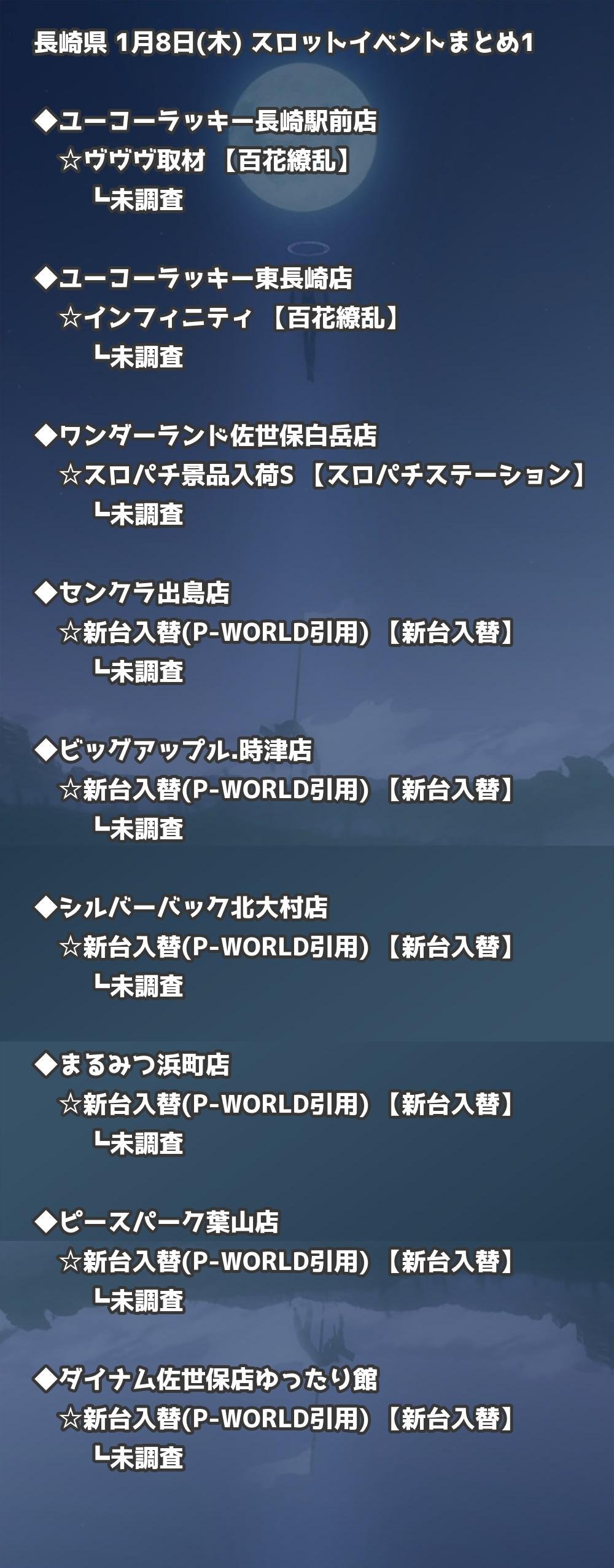 📊 長崎県 1月8日(木) 勝てるパチンコ・スロット取材店舗一覧|おすすめ順