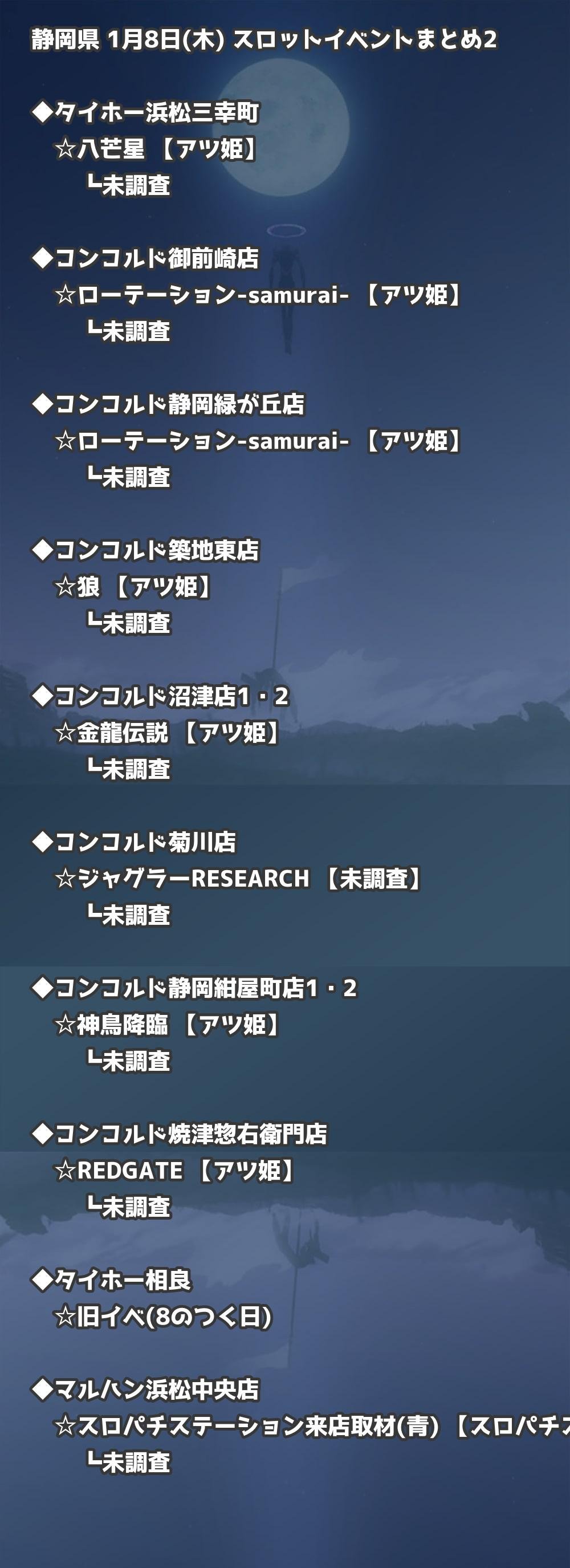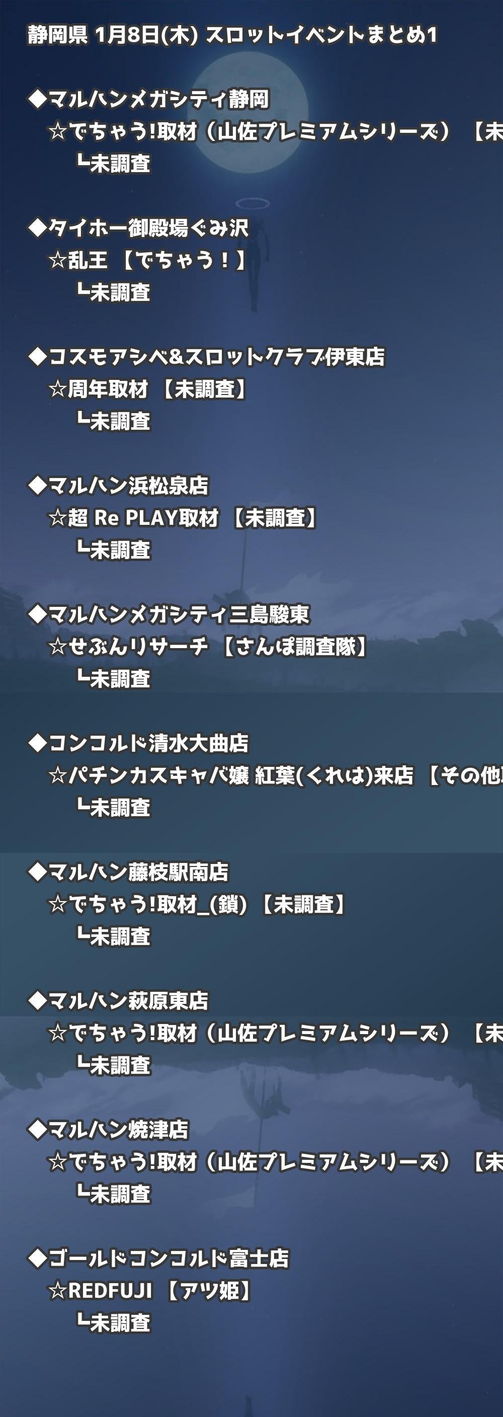📊 静岡県 1月8日(木) 勝てるパチンコ・スロット取材店舗一覧|おすすめ順