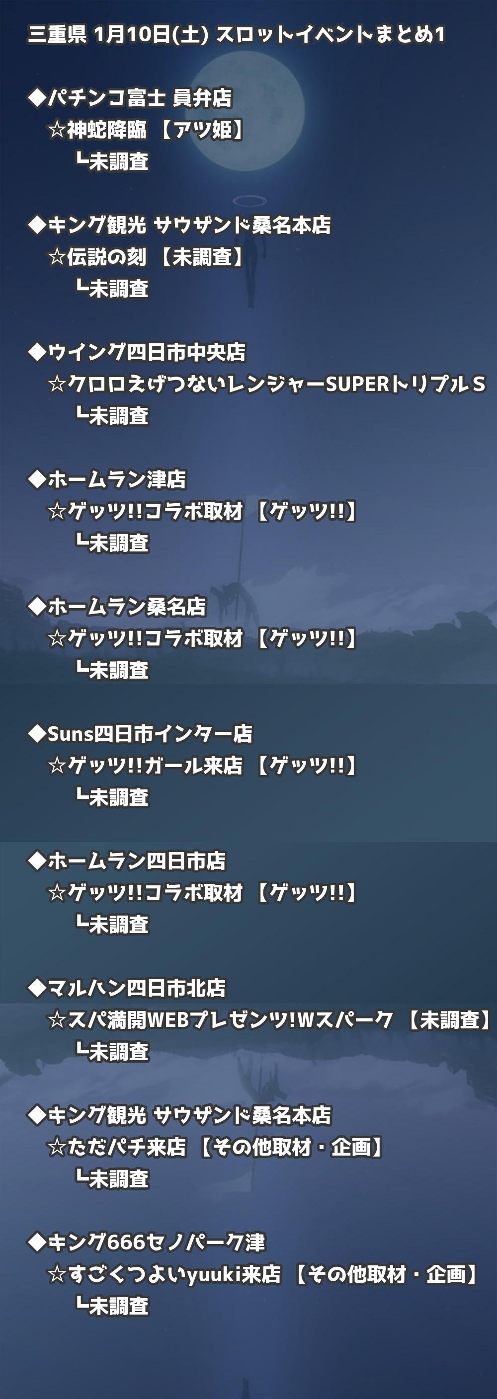 【三重県】1月10日(土) パチンコホールイベント取材まとめ記事です。