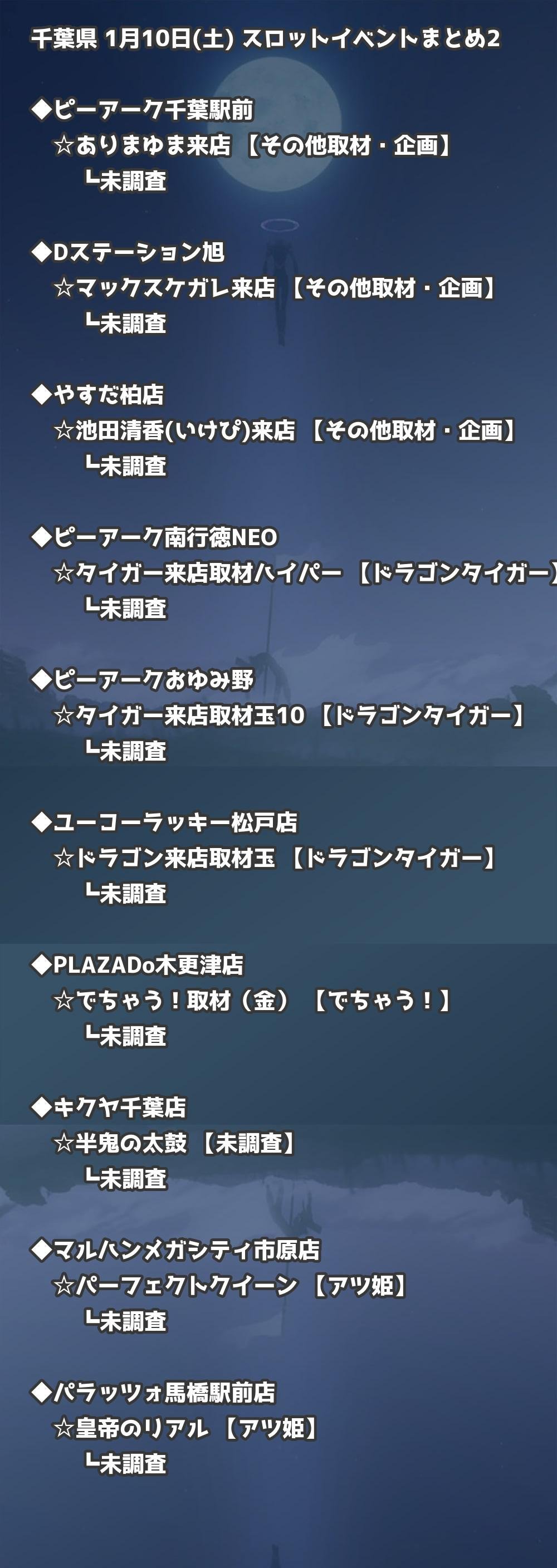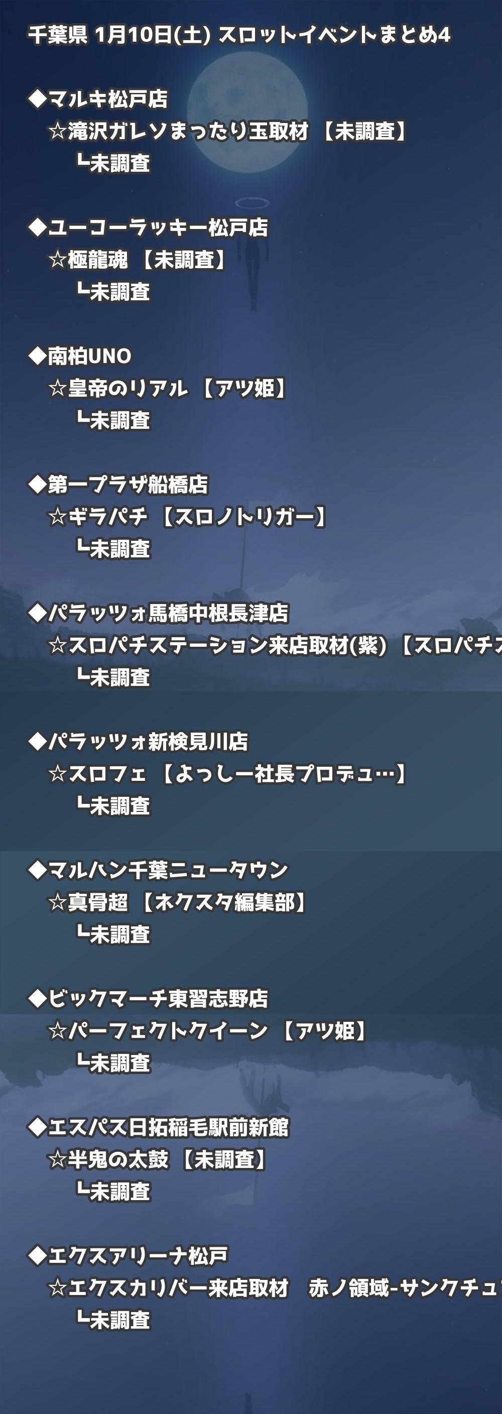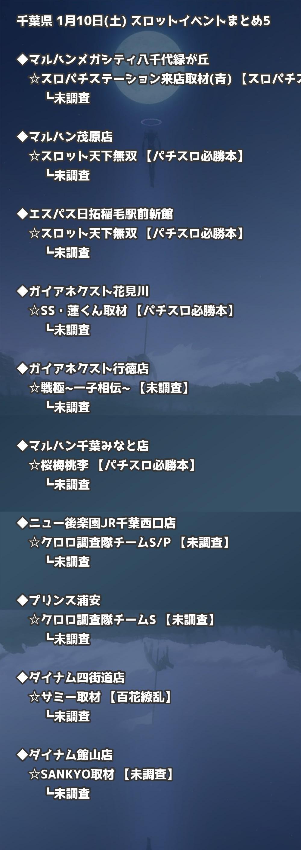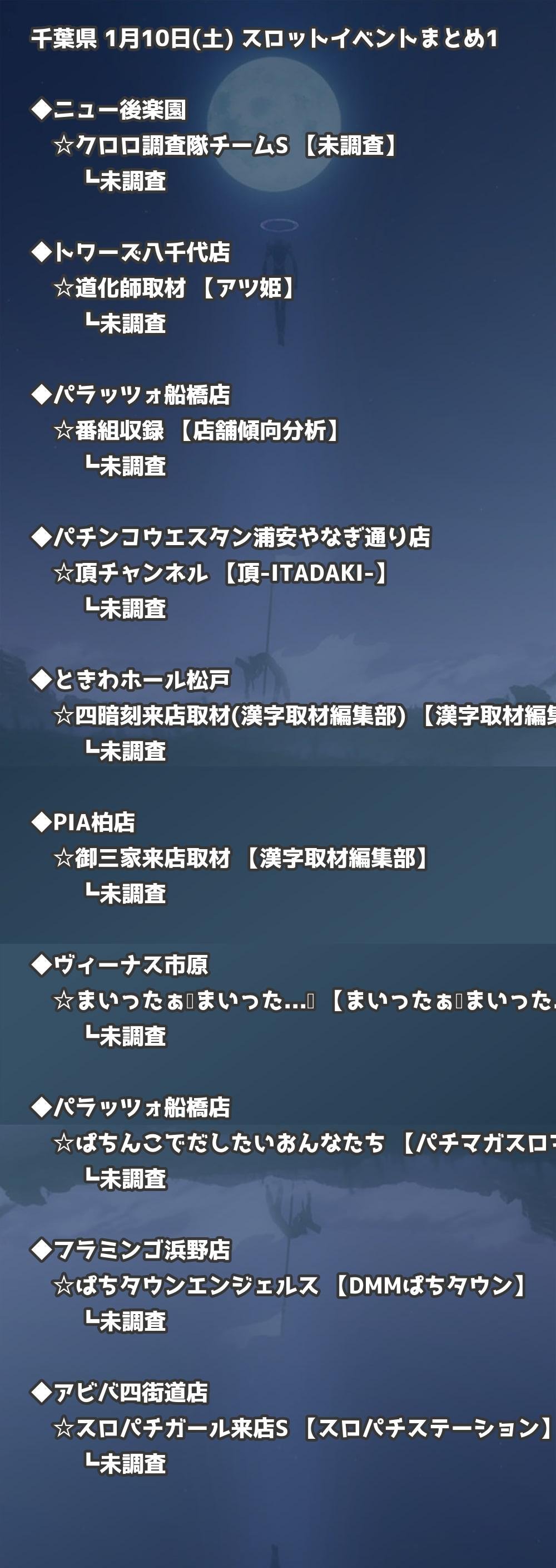 📊 千葉県 1月10日(土) 勝てるパチンコ・スロット取材店舗一覧|おすすめ順