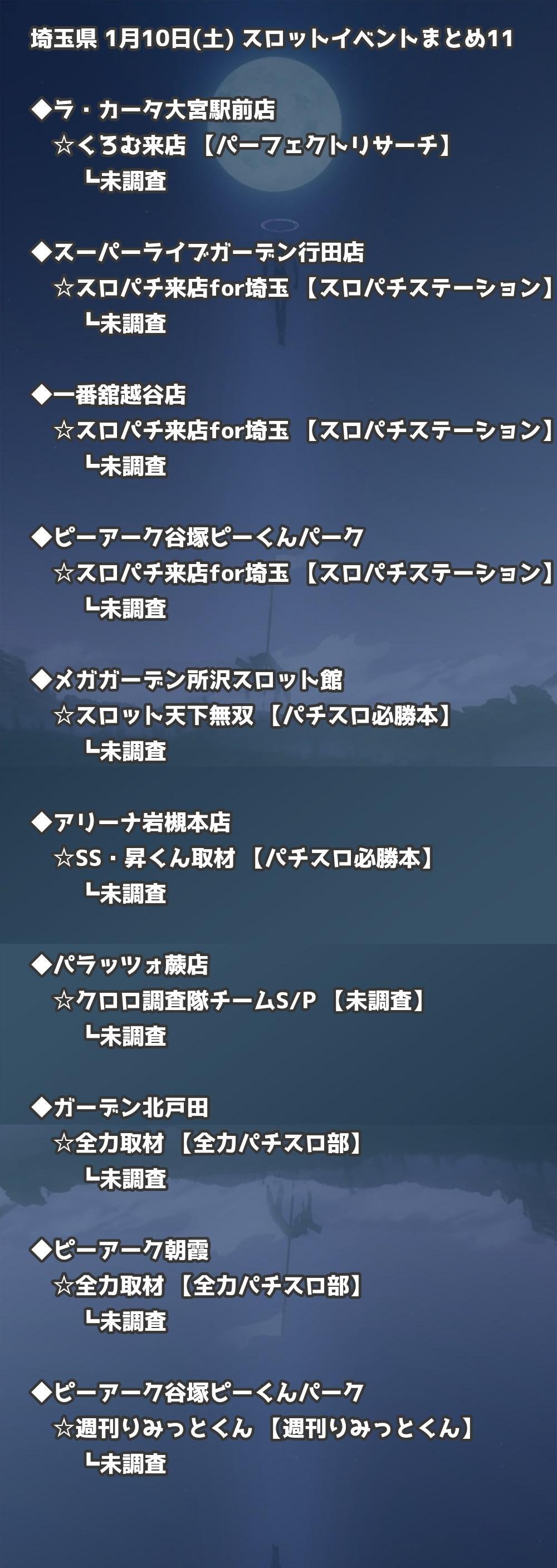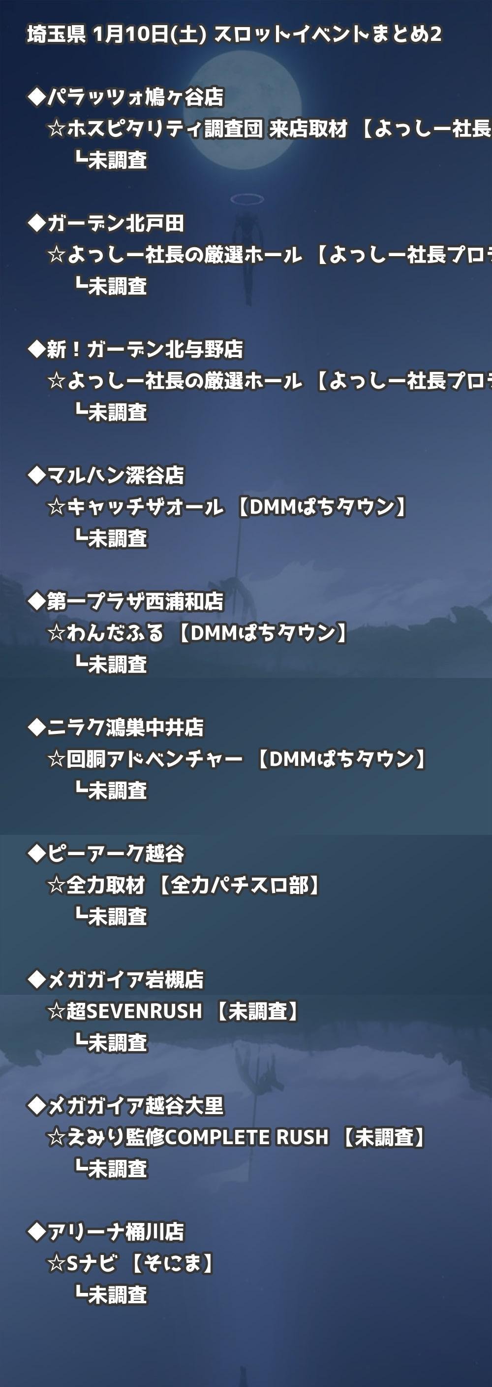 📊 埼玉県 1月10日(土) 勝てるパチンコ・スロット取材店舗一覧|おすすめ順
