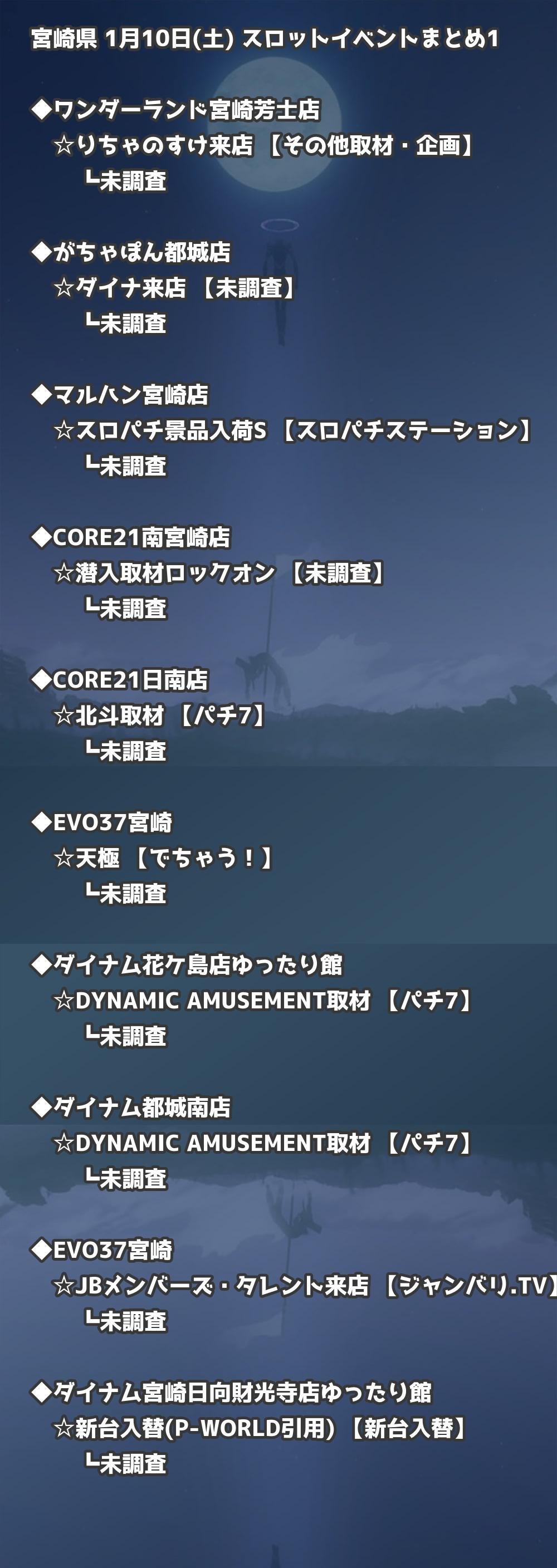 📊 宮崎県 1月10日(土) 勝てるパチンコ・スロット取材店舗一覧|おすすめ順