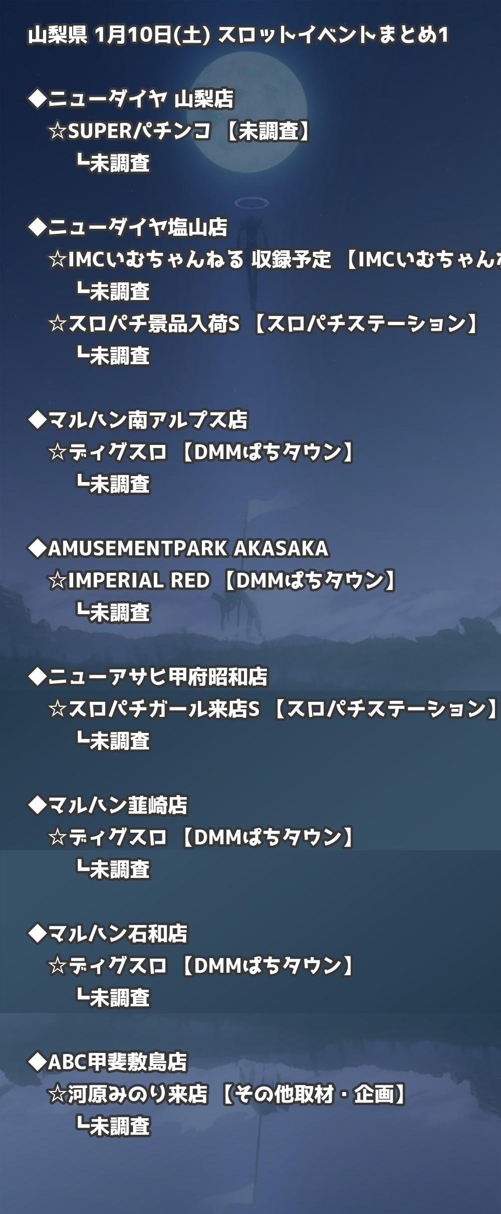 📊 山梨県 1月10日(土) 勝てるパチンコ・スロット取材店舗一覧|おすすめ順
