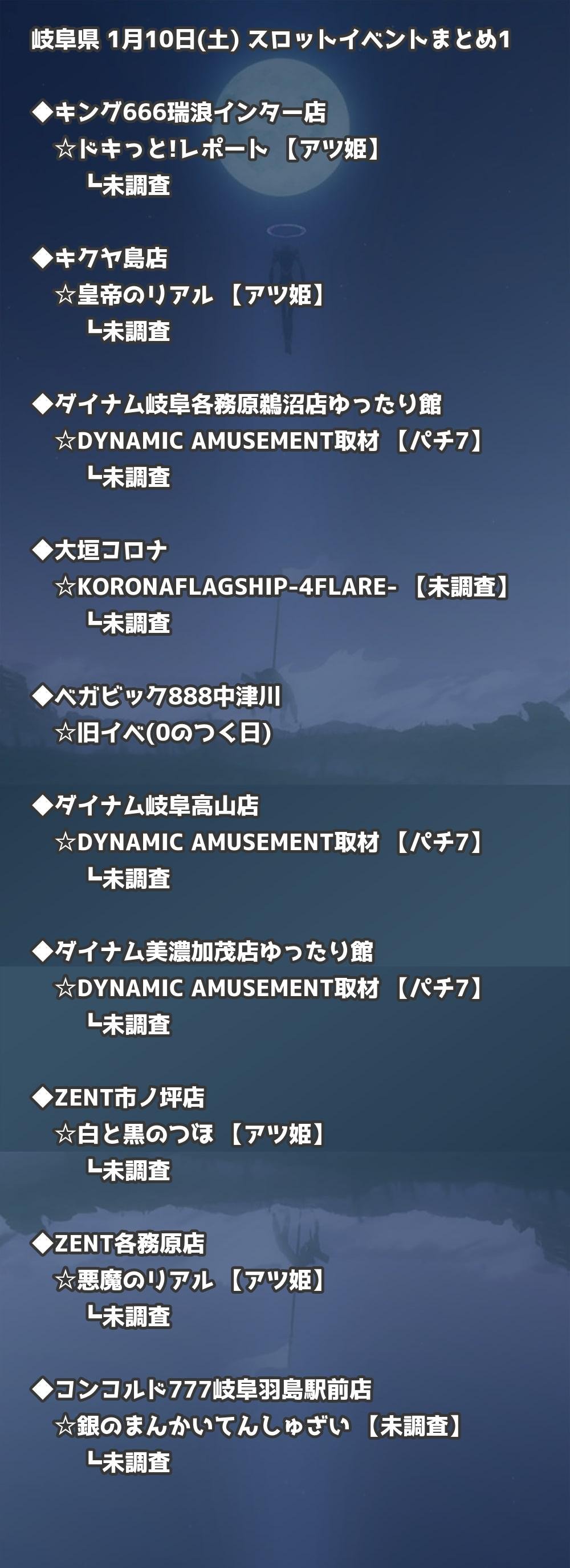 📊 岐阜県 1月10日(土) 勝てるパチンコ・スロット取材店舗一覧|おすすめ順