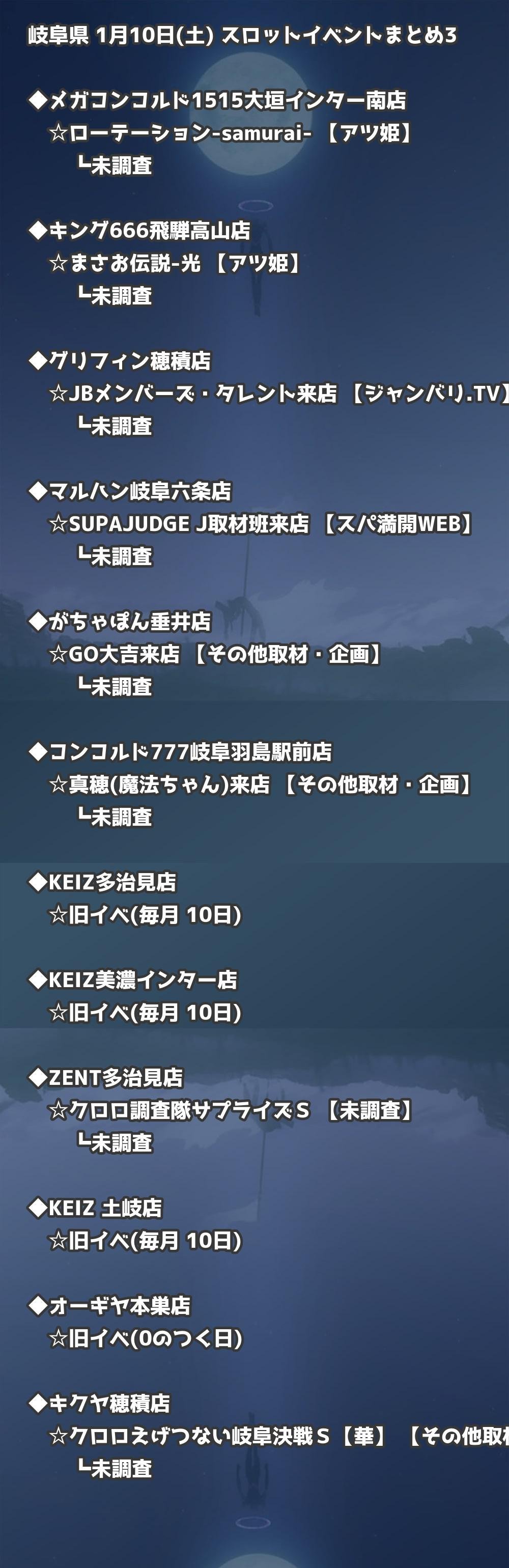 ※店舗結果掲載済 【岐阜】1月10日(土) 今日のスロット・パチンコ激熱イベント取材まとめ