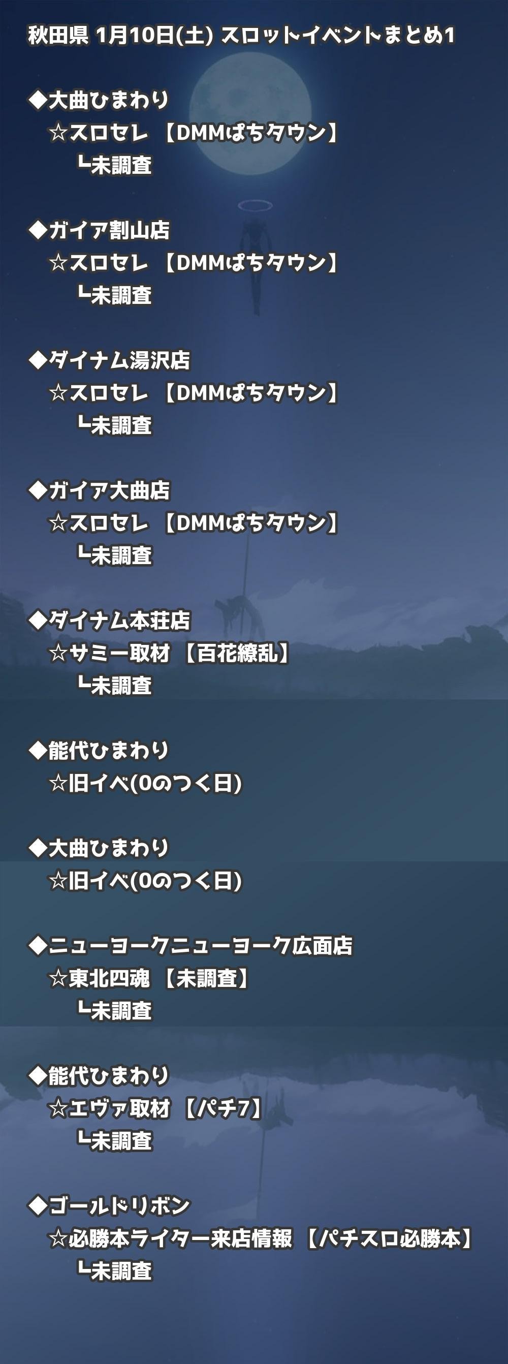 📊 秋田県 1月10日(土) 勝てるパチンコ・スロット取材店舗一覧|おすすめ順