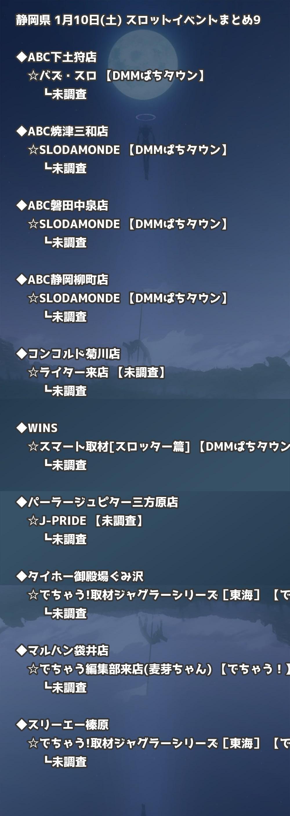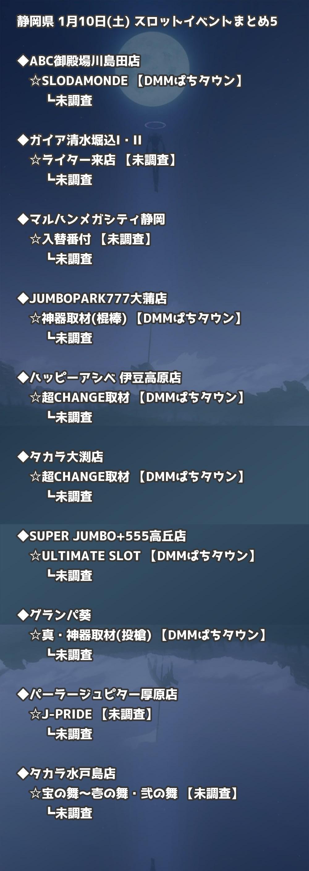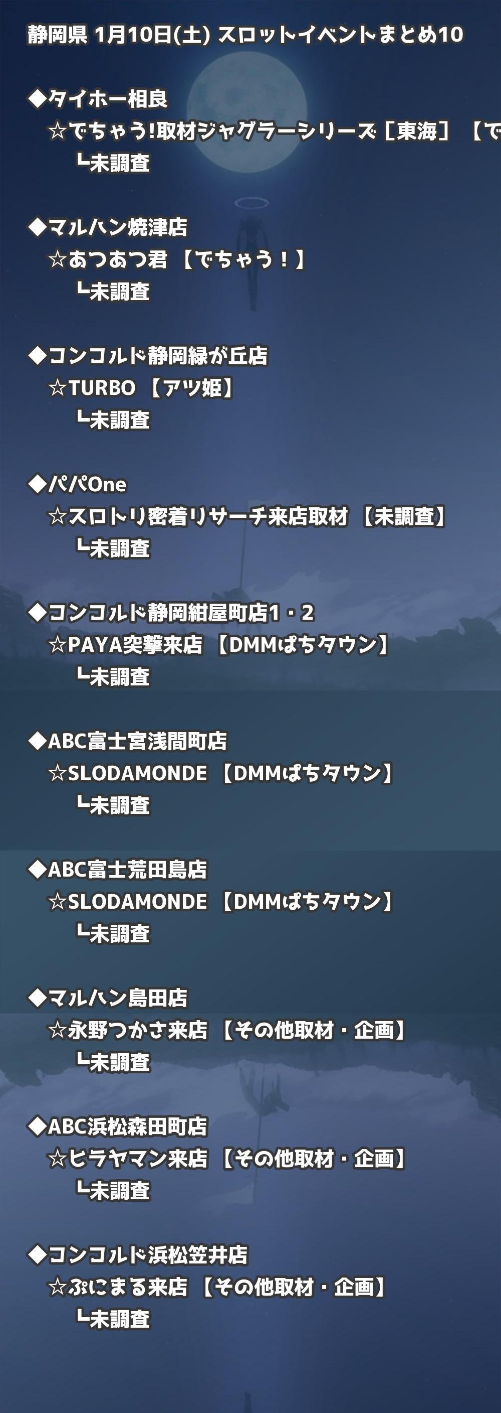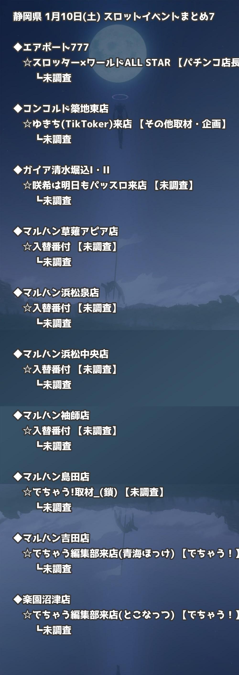 📊 静岡県 1月10日(土) 勝てるパチンコ・スロット取材店舗一覧|おすすめ順