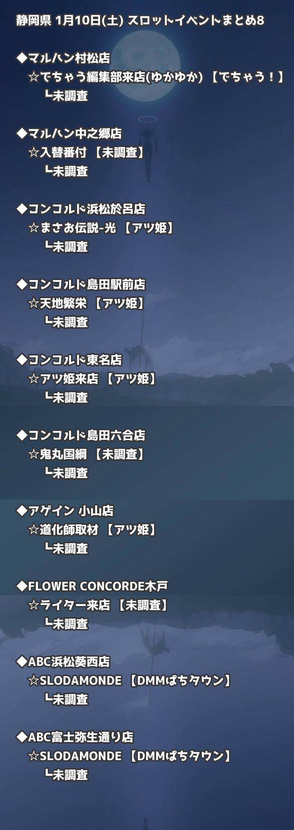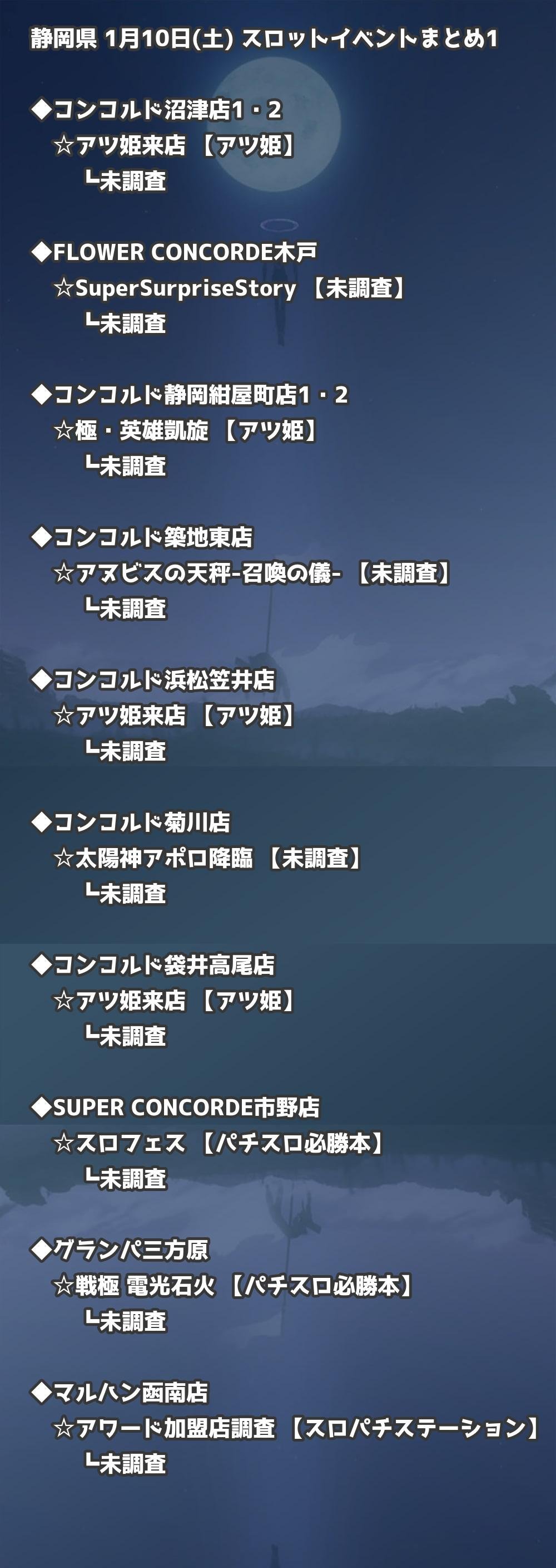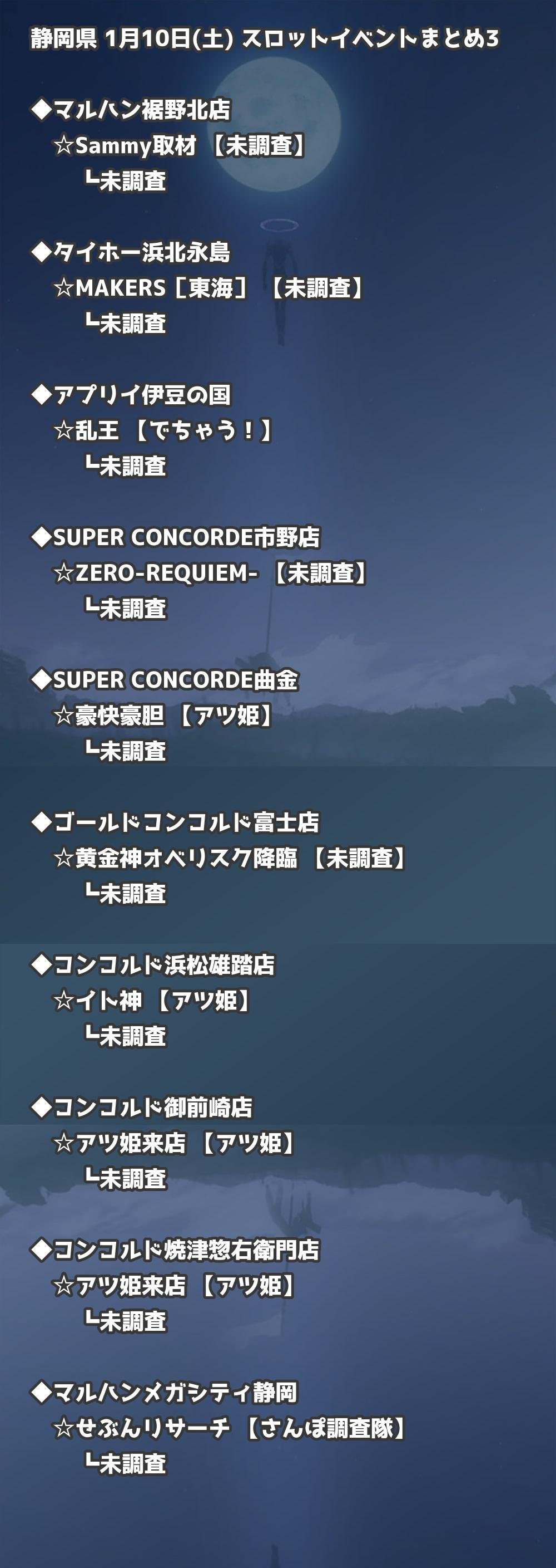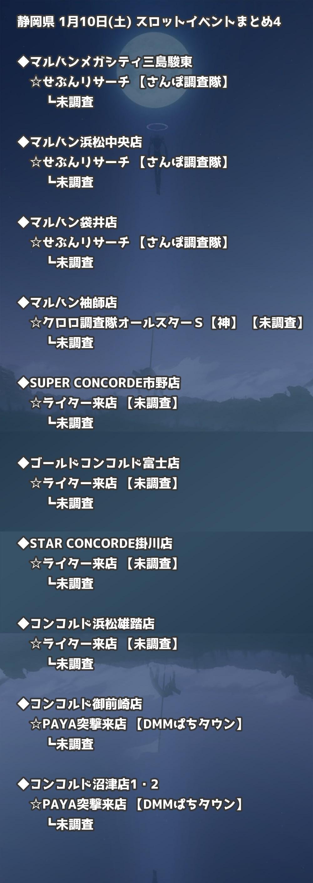 📊 静岡県 1月10日(土) 勝てるパチンコ・スロット取材店舗一覧|おすすめ順