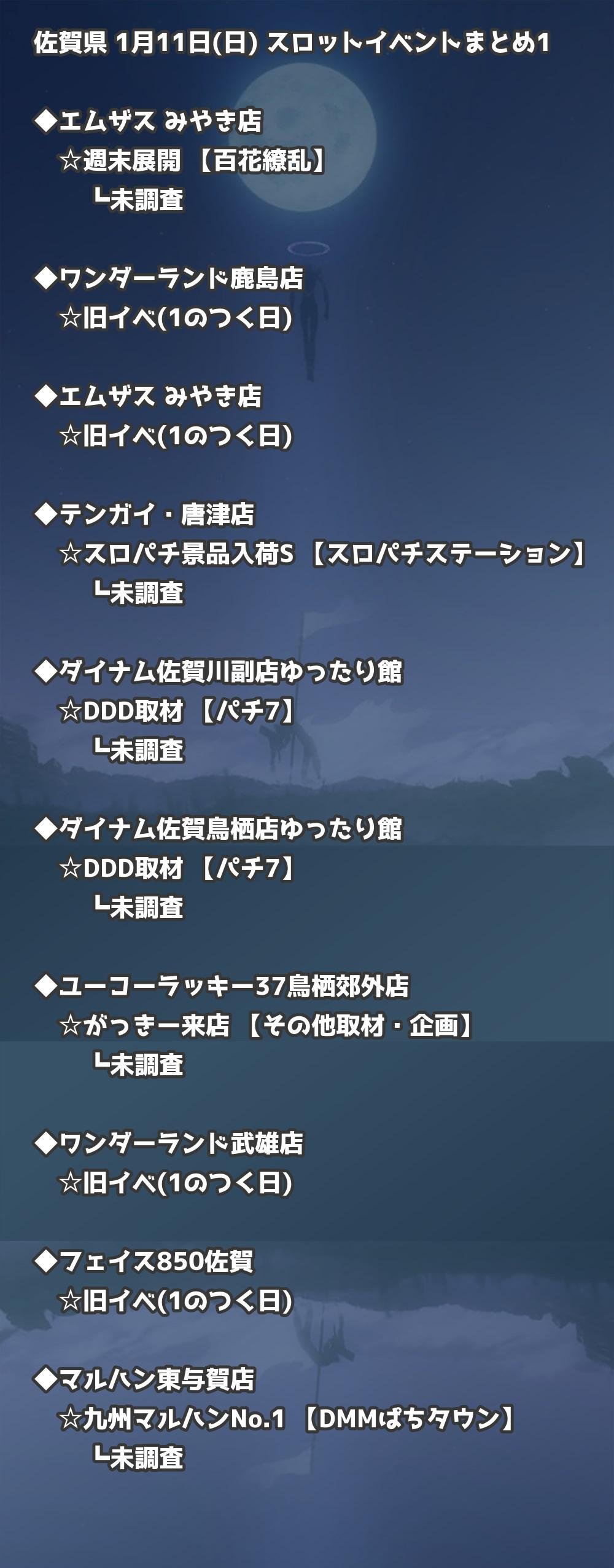 📊 佐賀県 1月11日(日) 勝てるパチンコ・スロット取材店舗一覧|おすすめ順