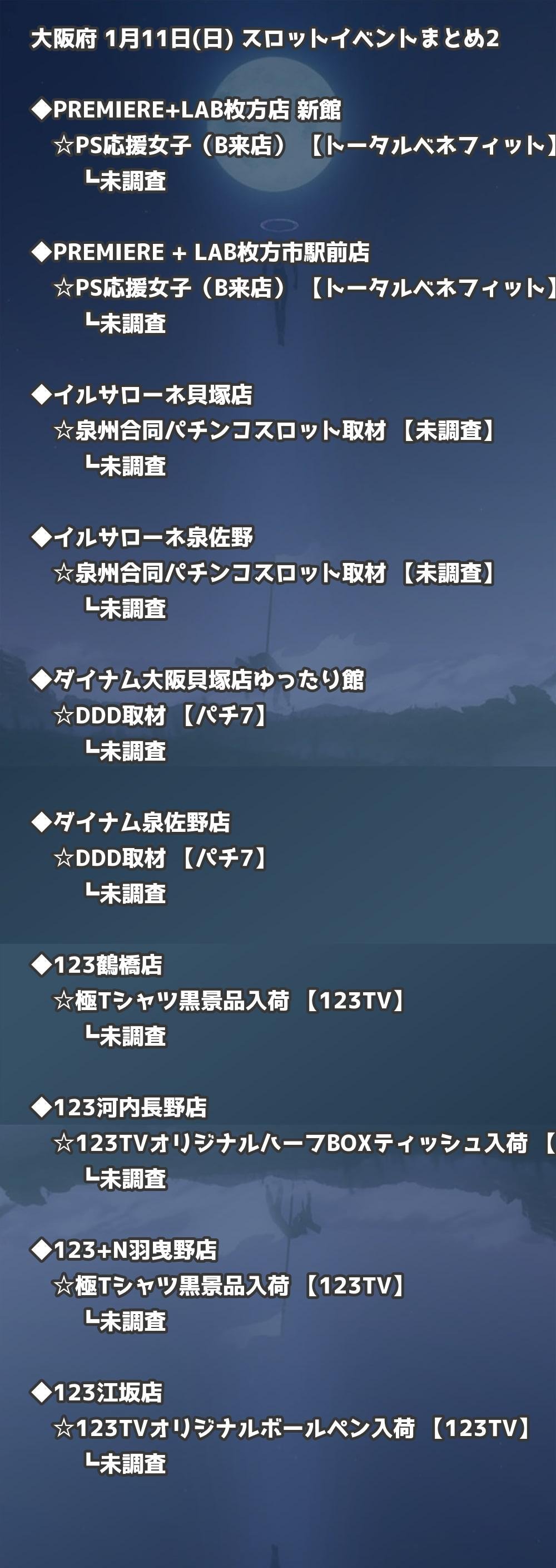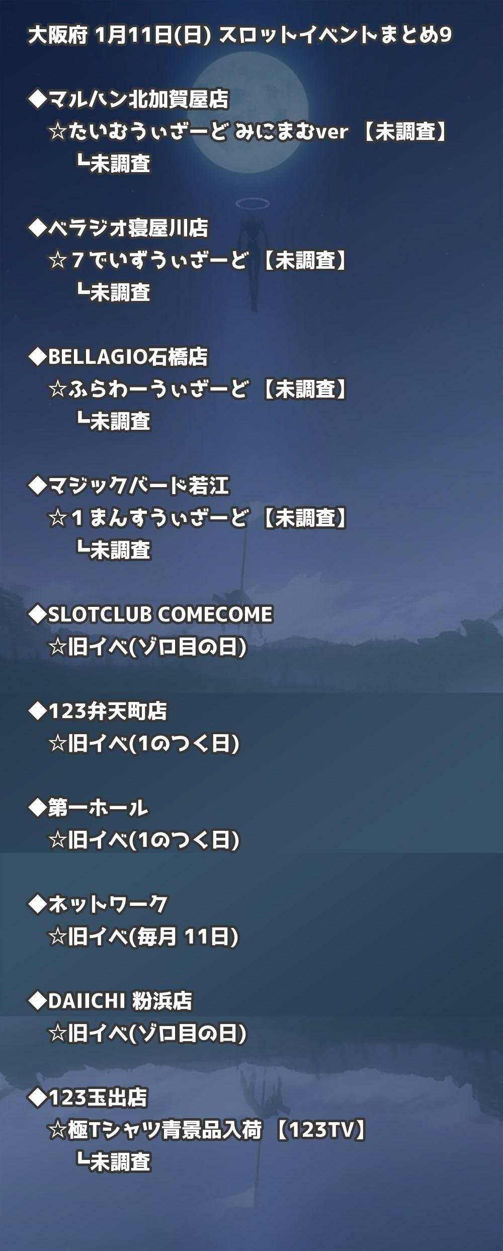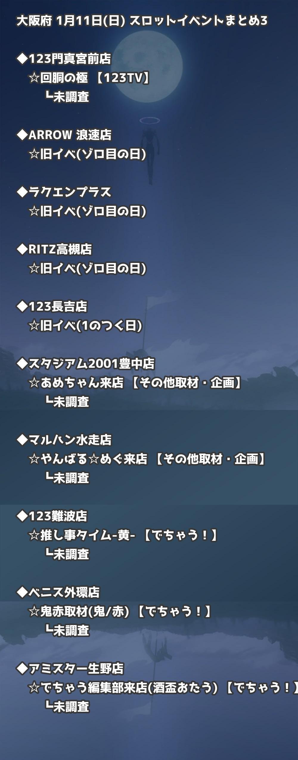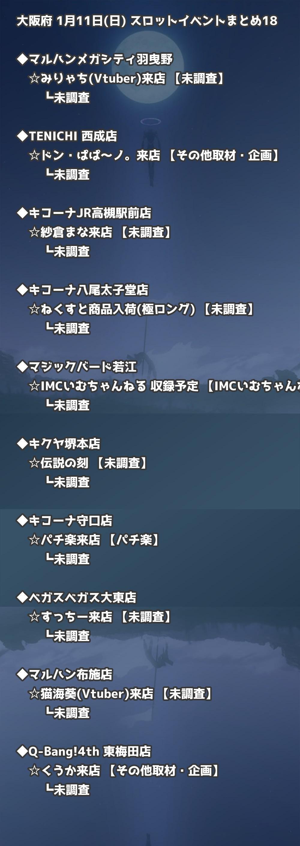 【大阪府】1月11日(日) パチンコホールイベント取材まとめ記事です。