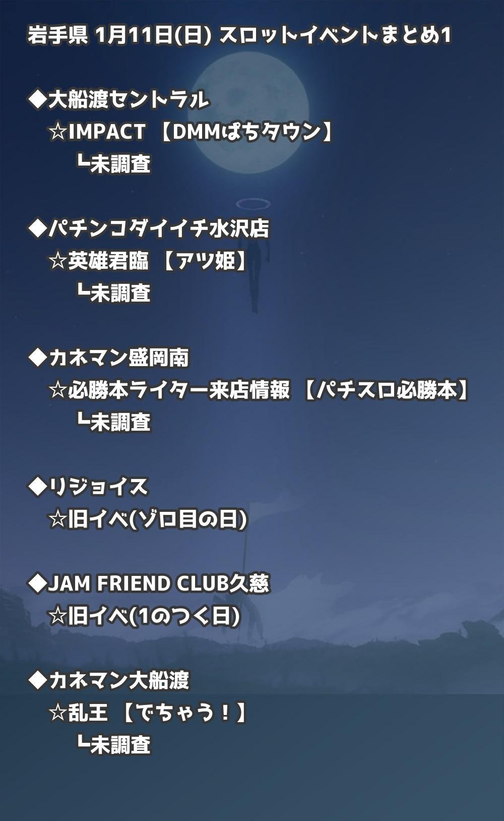【岩手県】1月11日(日) パチンコホールイベント取材まとめ記事です。
