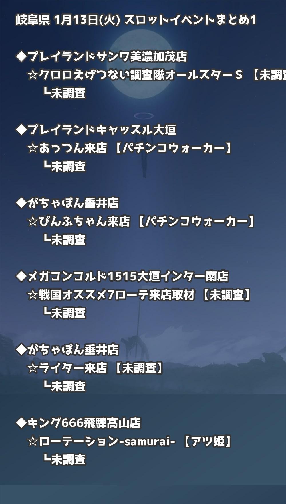 【岐阜県】1月13日(火) パチンコホールイベント取材まとめ記事です。