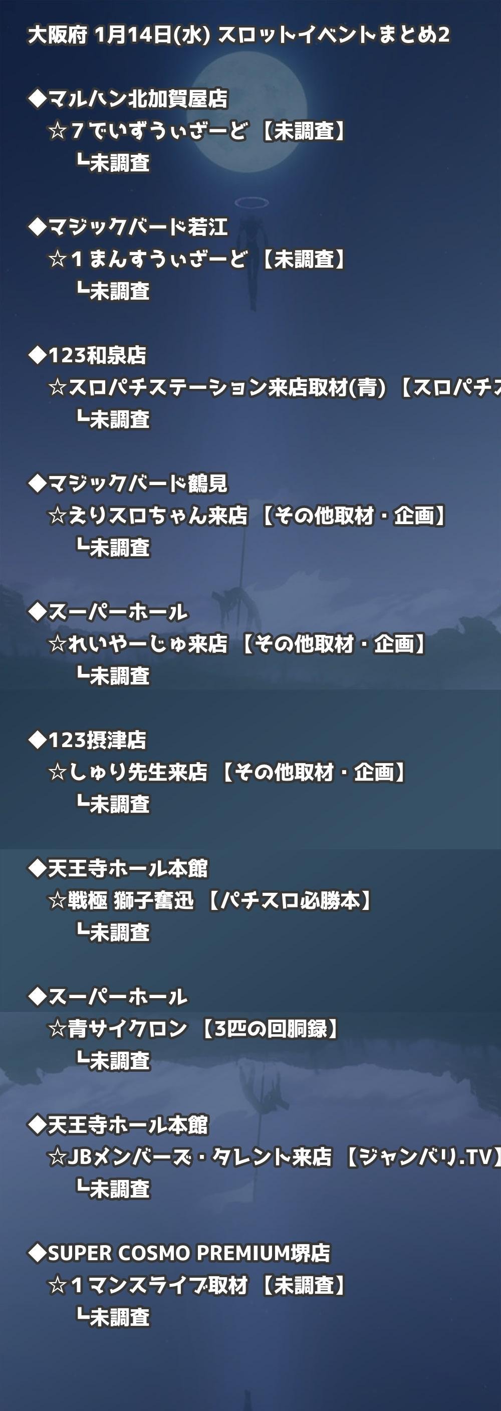 【大阪府】1月14日(水) パチンコホールイベント取材まとめ記事です。