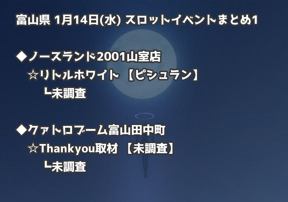 【富山県】1月14日(水) パチンコホールイベント取材まとめ記事です。