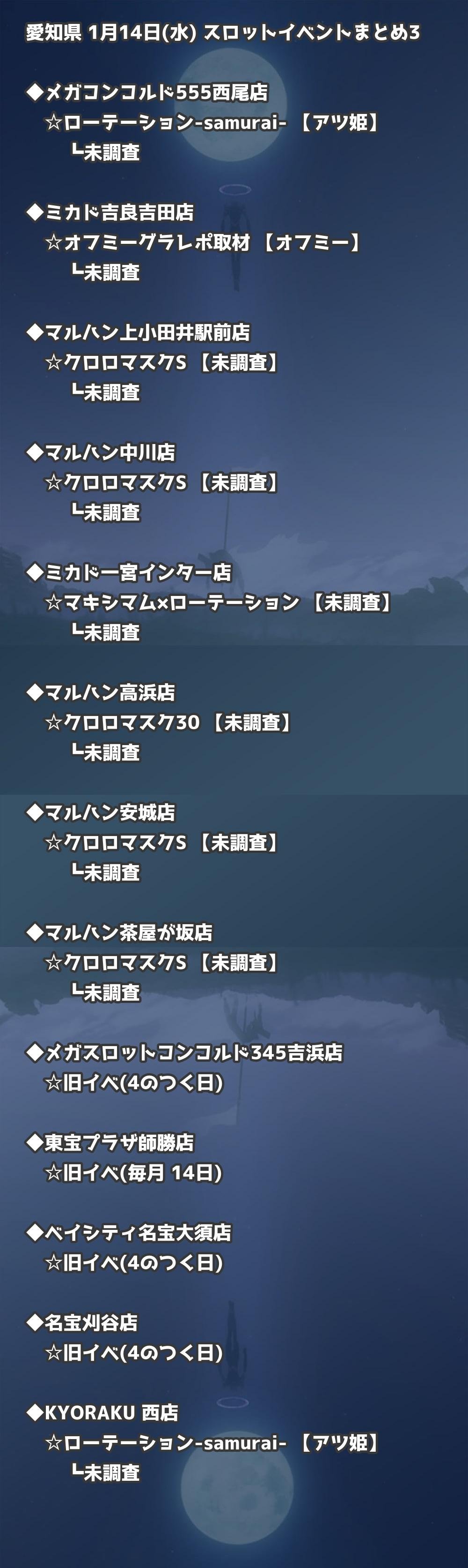 【愛知県】1月14日(水) パチンコホールイベント取材まとめ記事です。