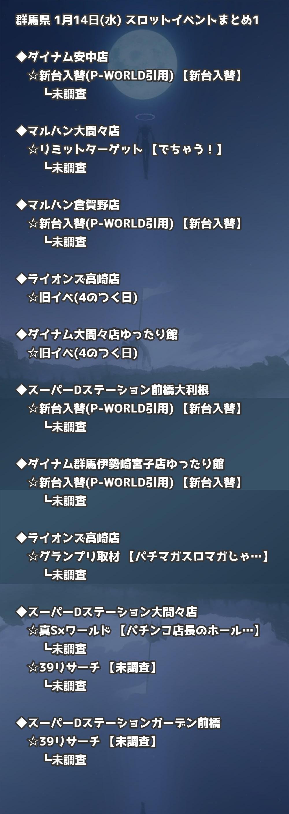 【群馬県】1月14日(水) パチンコホールイベント取材まとめ記事です。