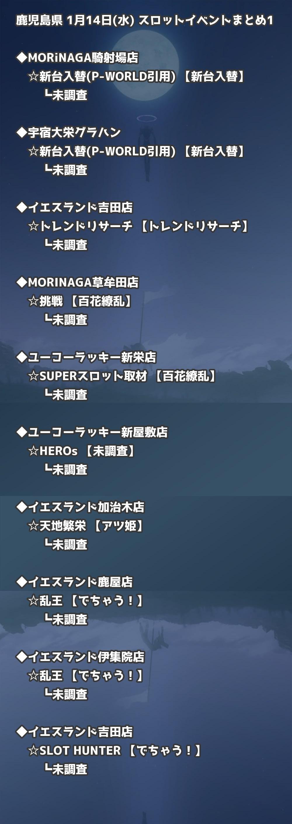 【鹿児島県】1月14日(水) パチンコホールイベント取材まとめ記事です。