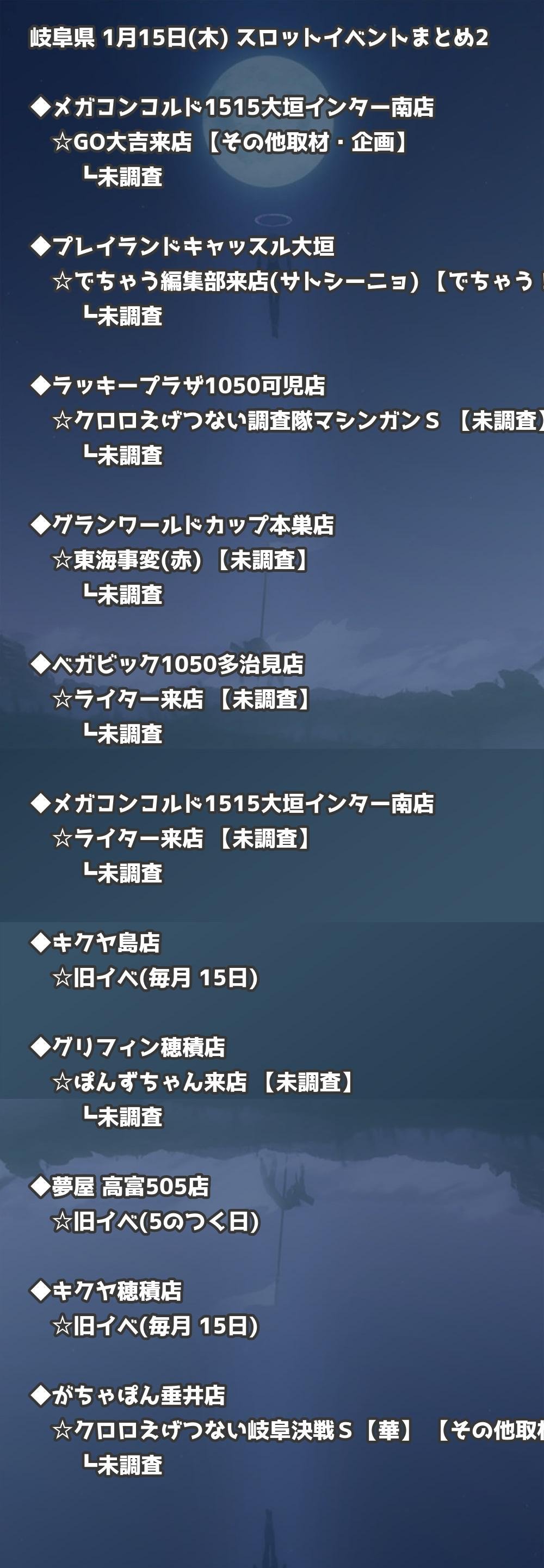 【岐阜県】1月15日(木) パチンコホールイベント取材まとめ記事です。