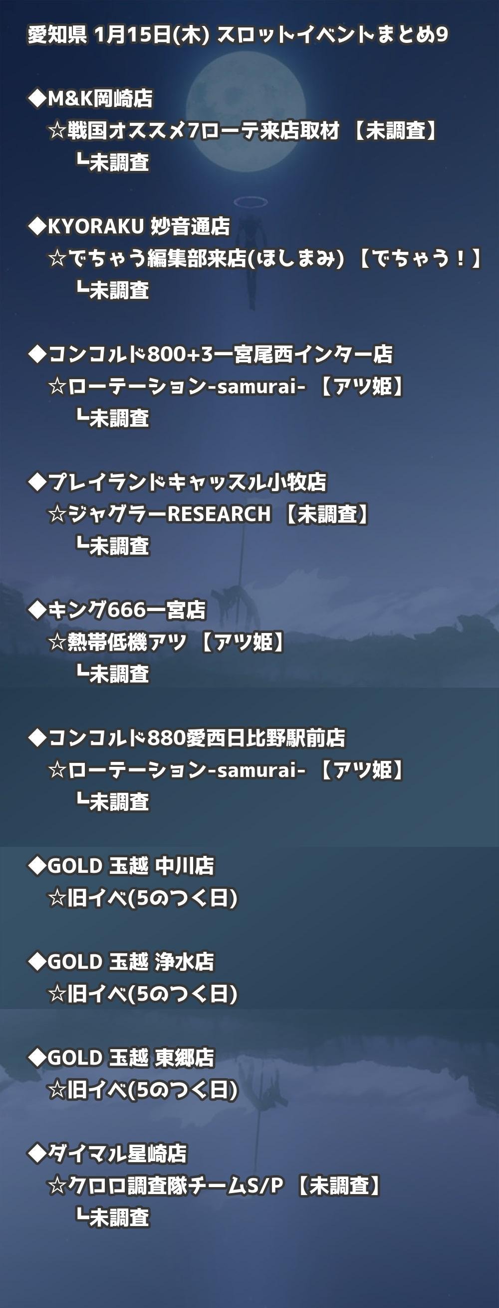 【愛知県】1月15日(木) パチンコホールイベント取材まとめ記事です。