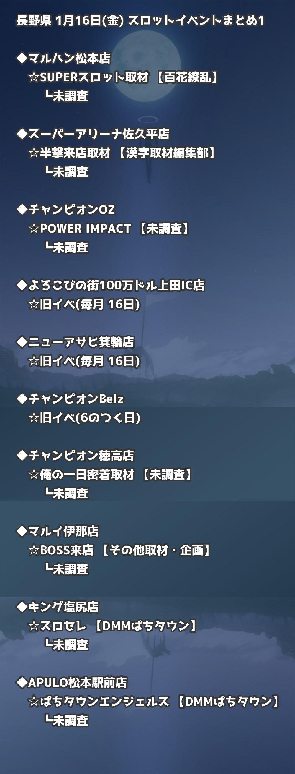 【長野県】1月16日(金) パチンコホールイベント取材まとめ記事です。
