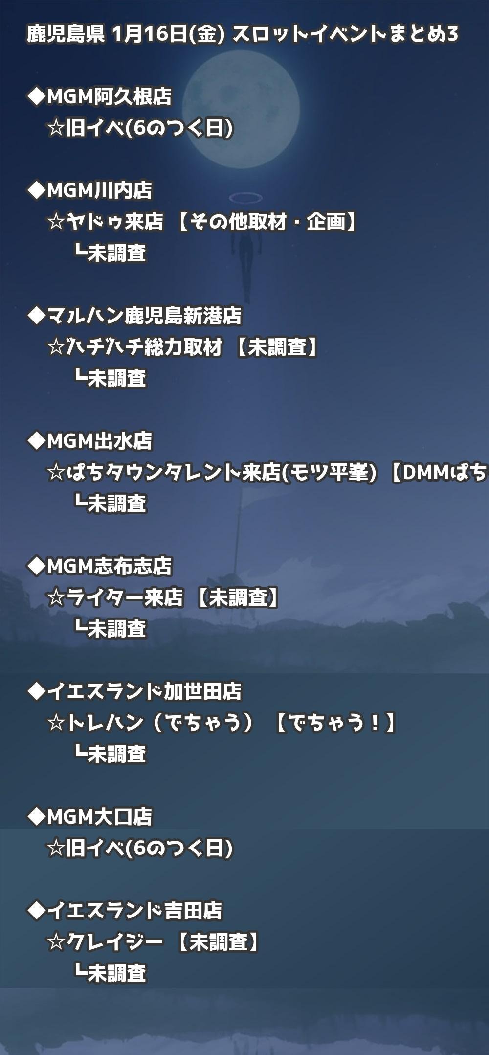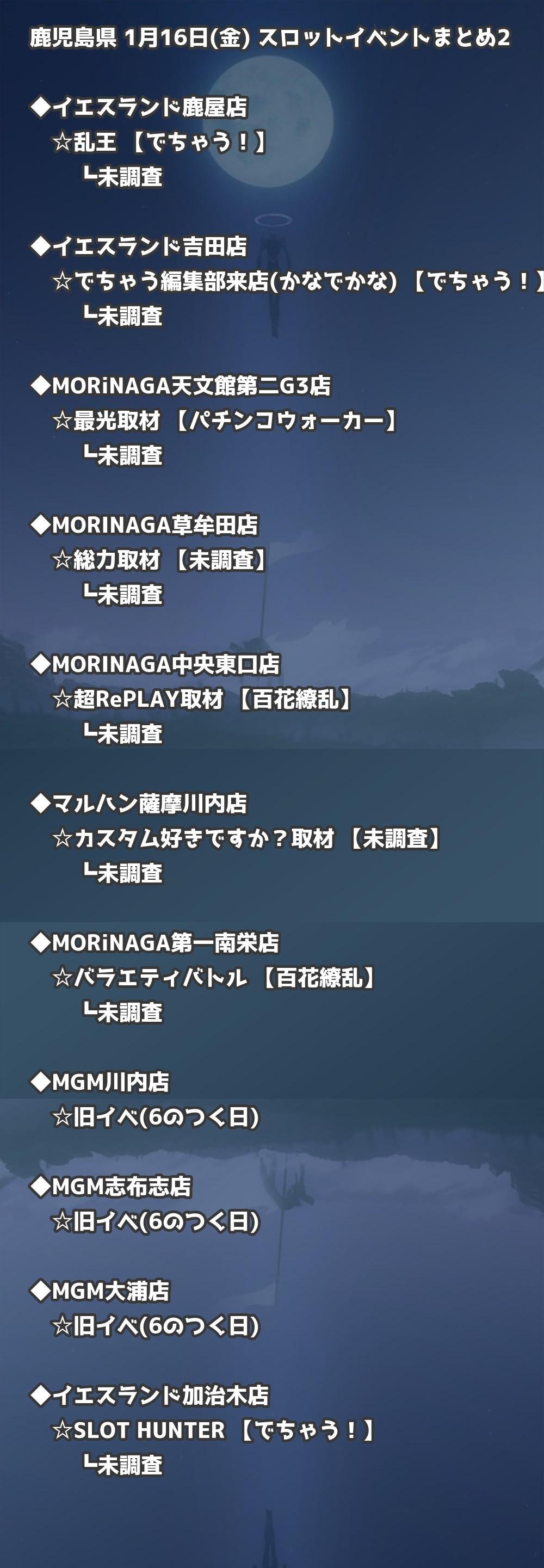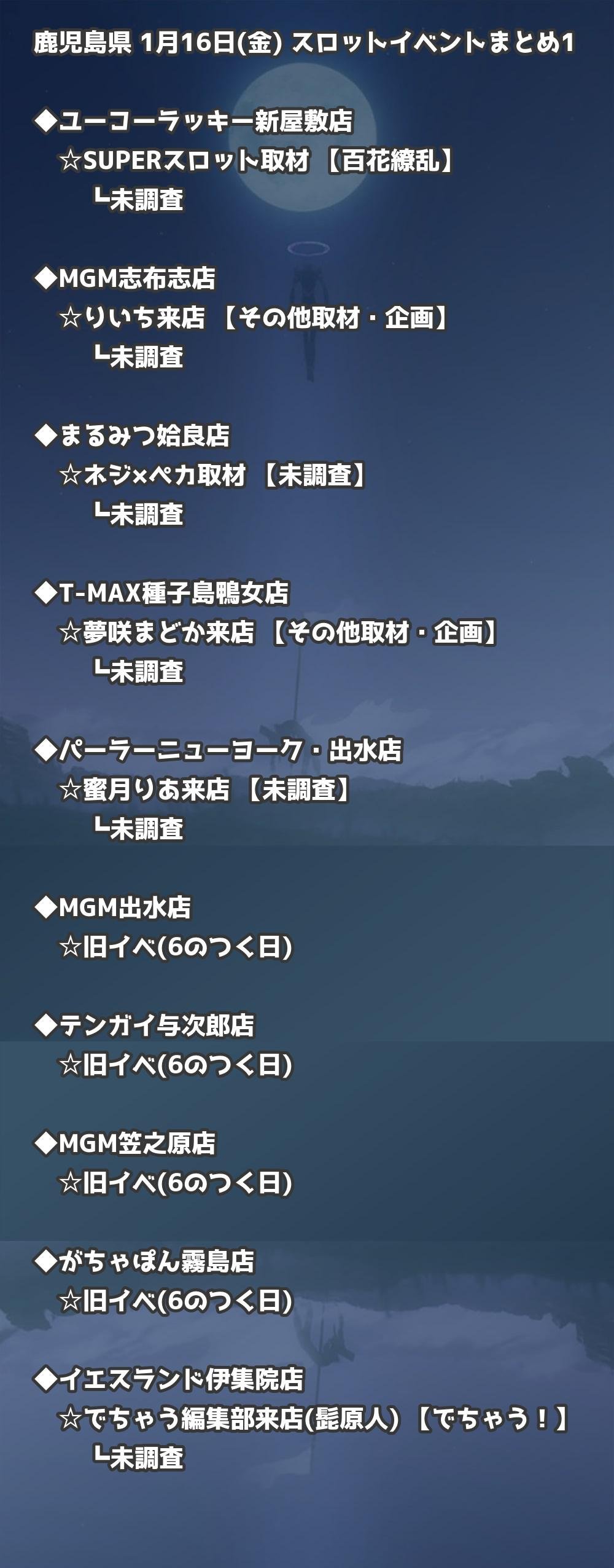 【鹿児島県】1月16日(金) パチンコホールイベント取材まとめ記事です。