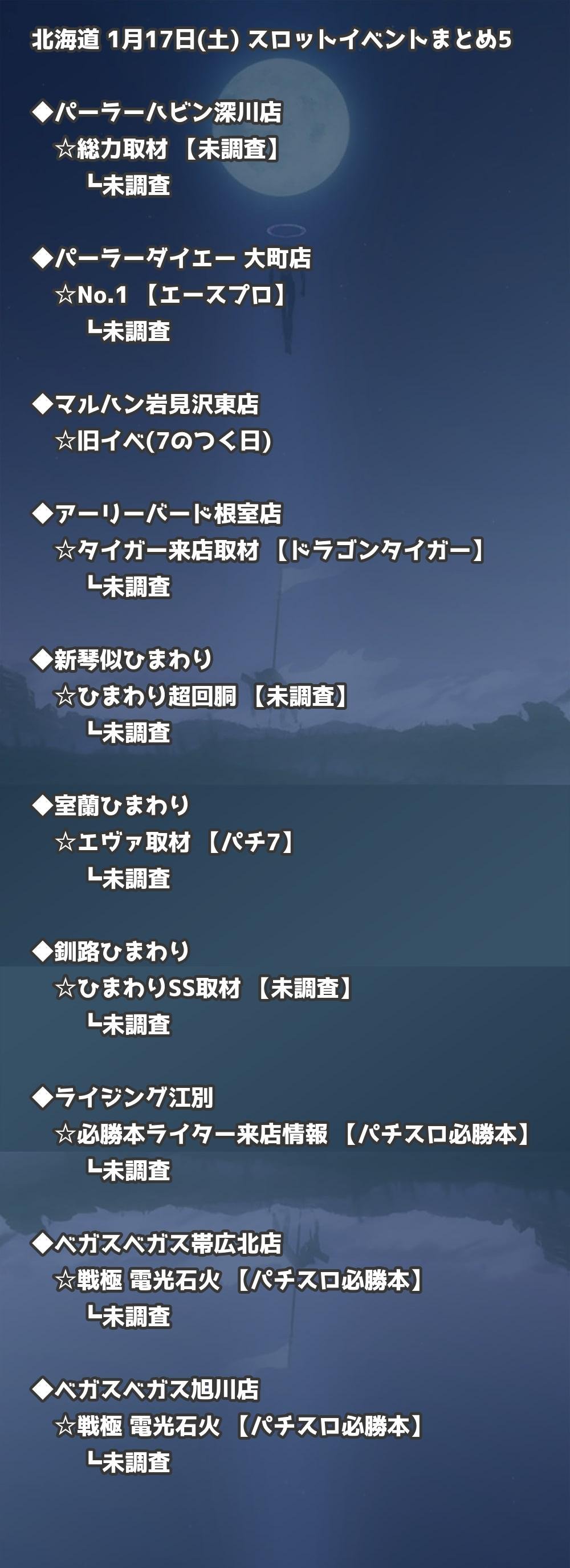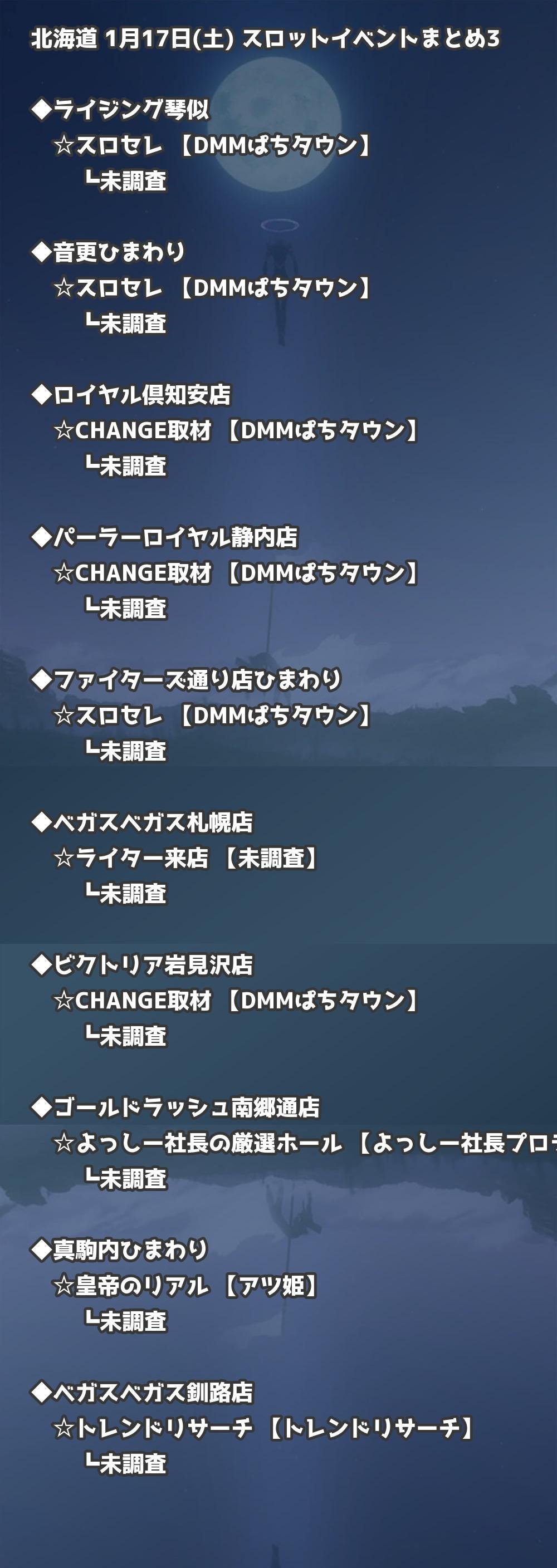 【北海道】1月17日(土) パチンコホールイベント取材まとめ記事です。