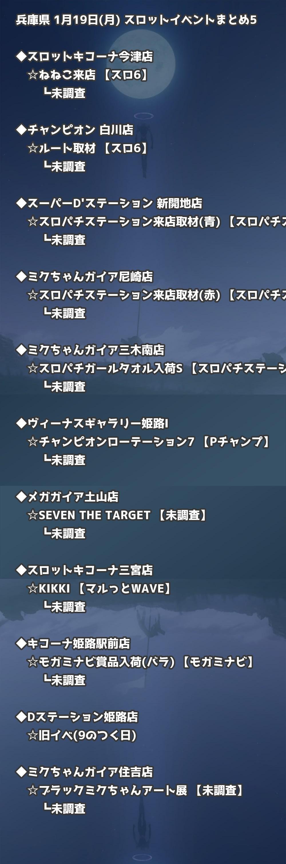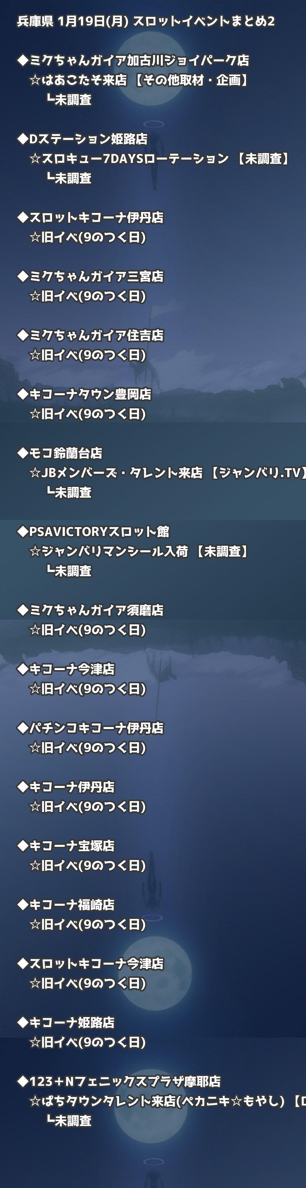 1月19日(月) 兵庫県のTOP20の結果を掲載しています。タップで上位機種など詳細が見れます。