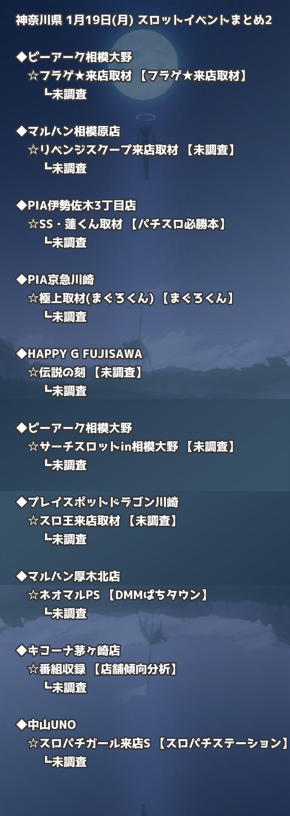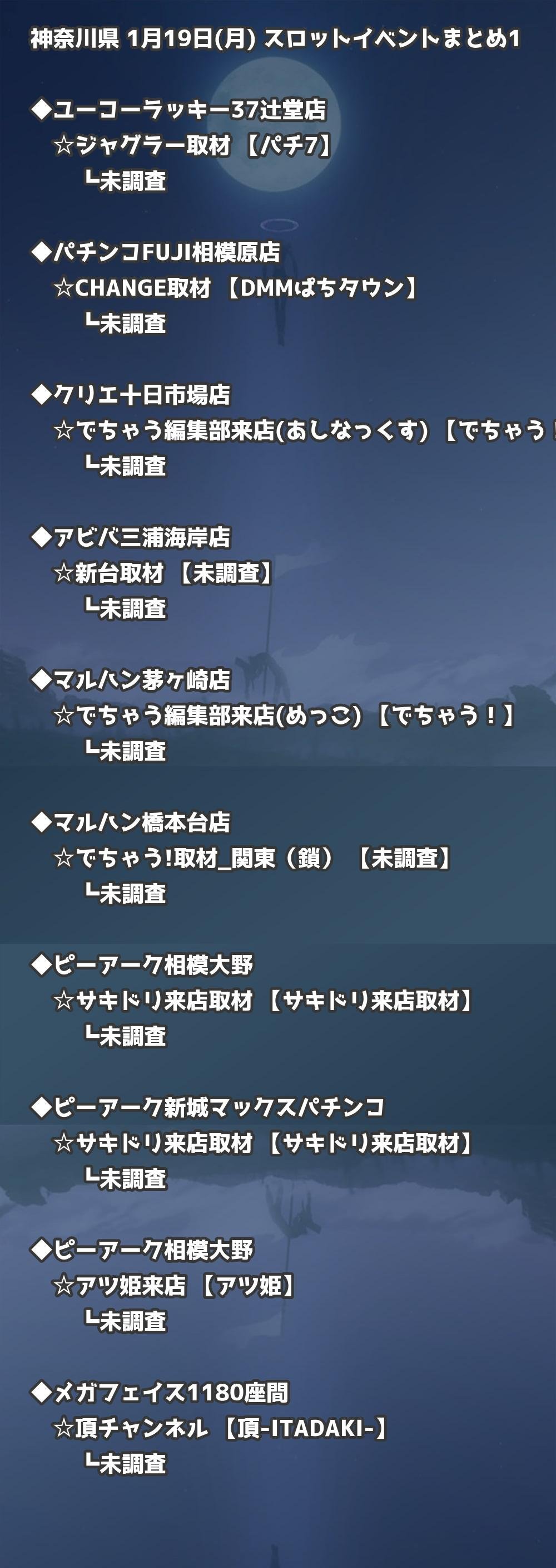 【神奈川県】1月19日(月) パチンコホールイベント取材まとめ記事です。