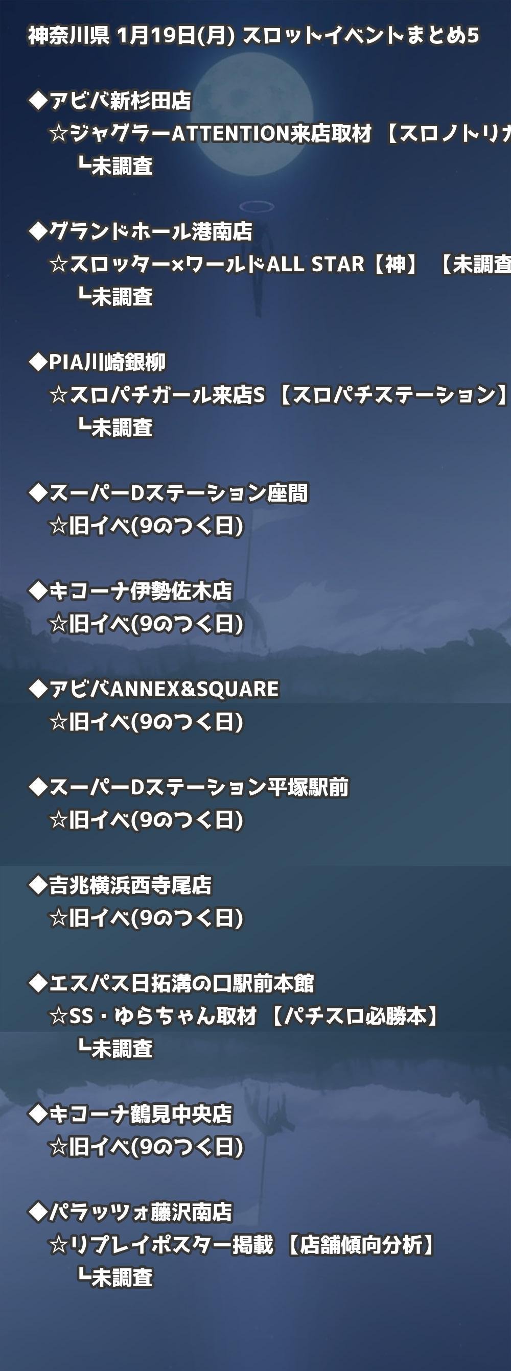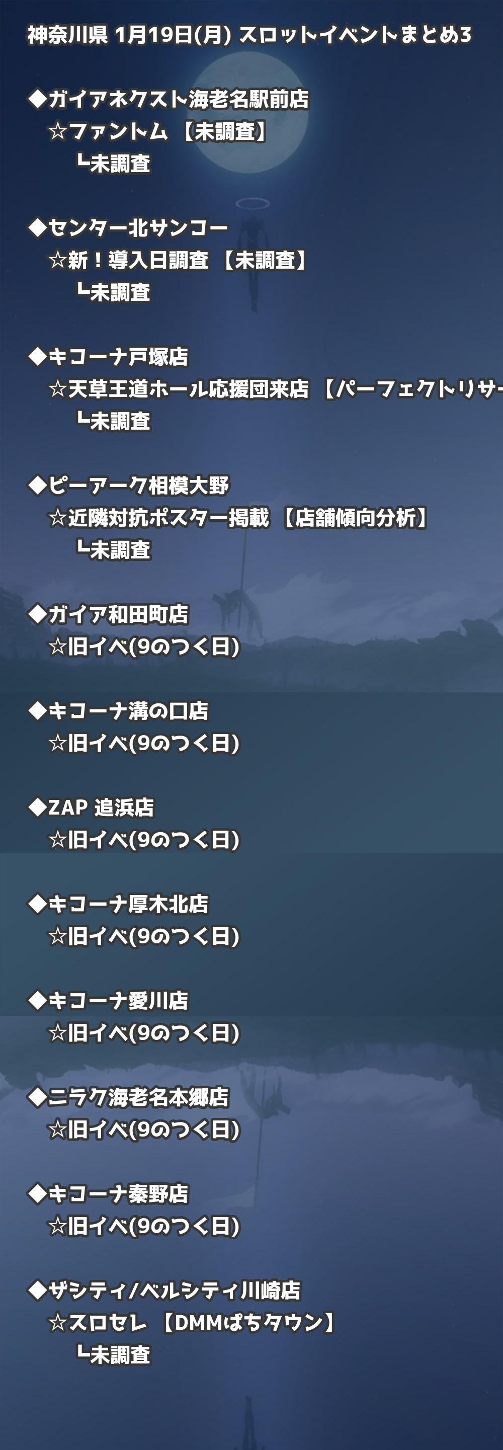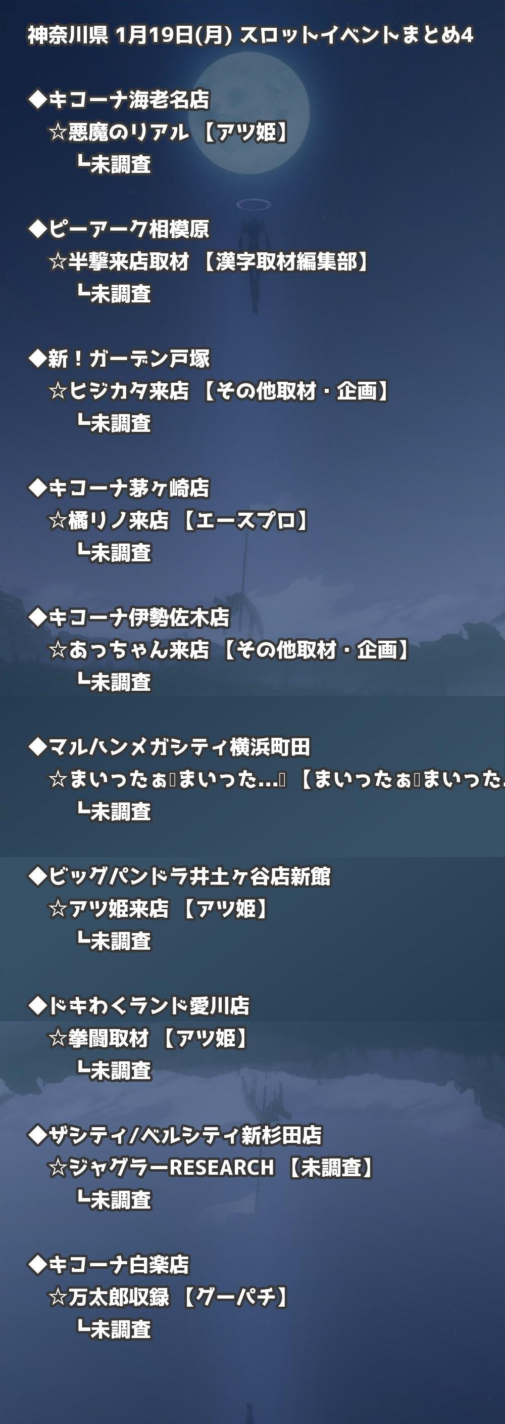 ※店舗結果掲載済 【神奈川】1月19日(月) 今日のスロット・パチンコ激熱イベント取材まとめ