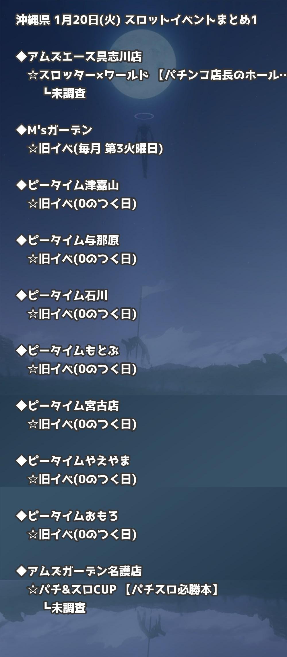 【沖縄県】1月20日(火) パチンコホールイベント取材まとめ記事です。