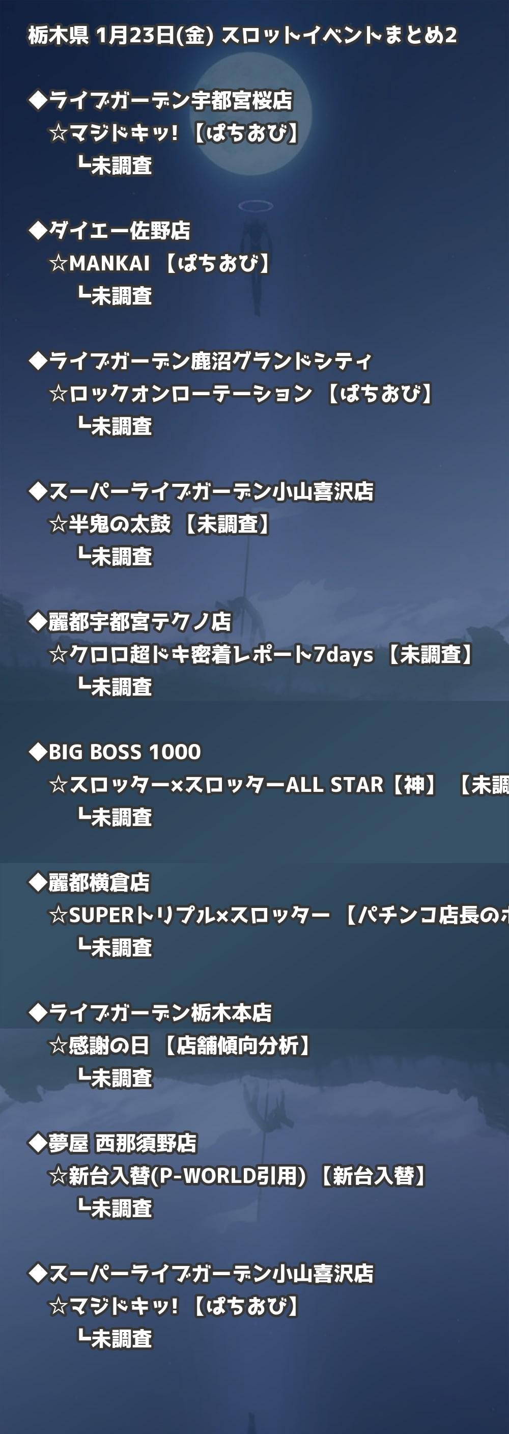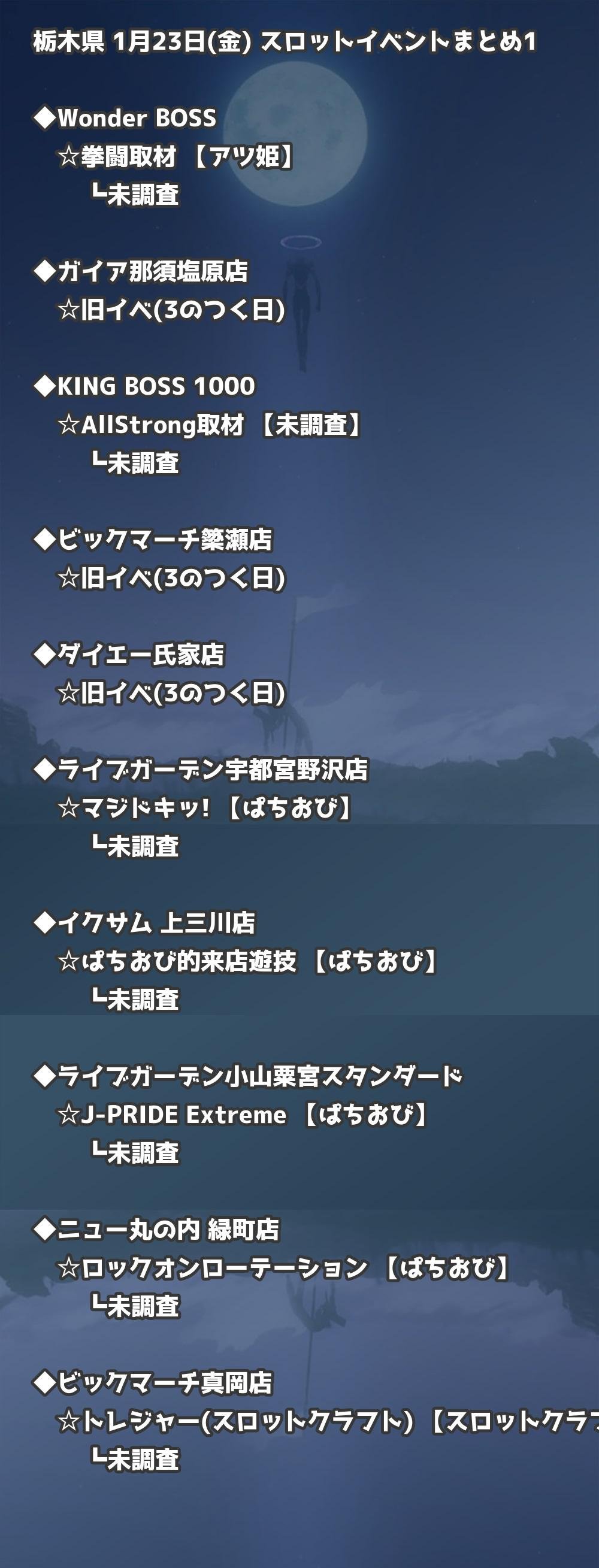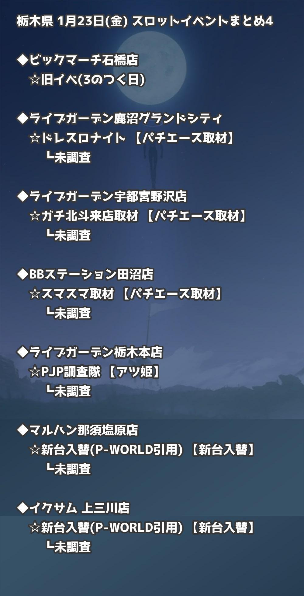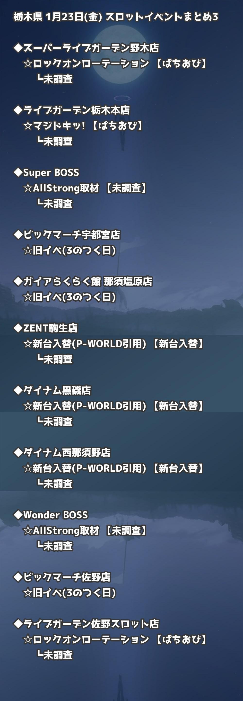【栃木県】1月23日(金) パチンコホールイベント取材まとめ記事です。