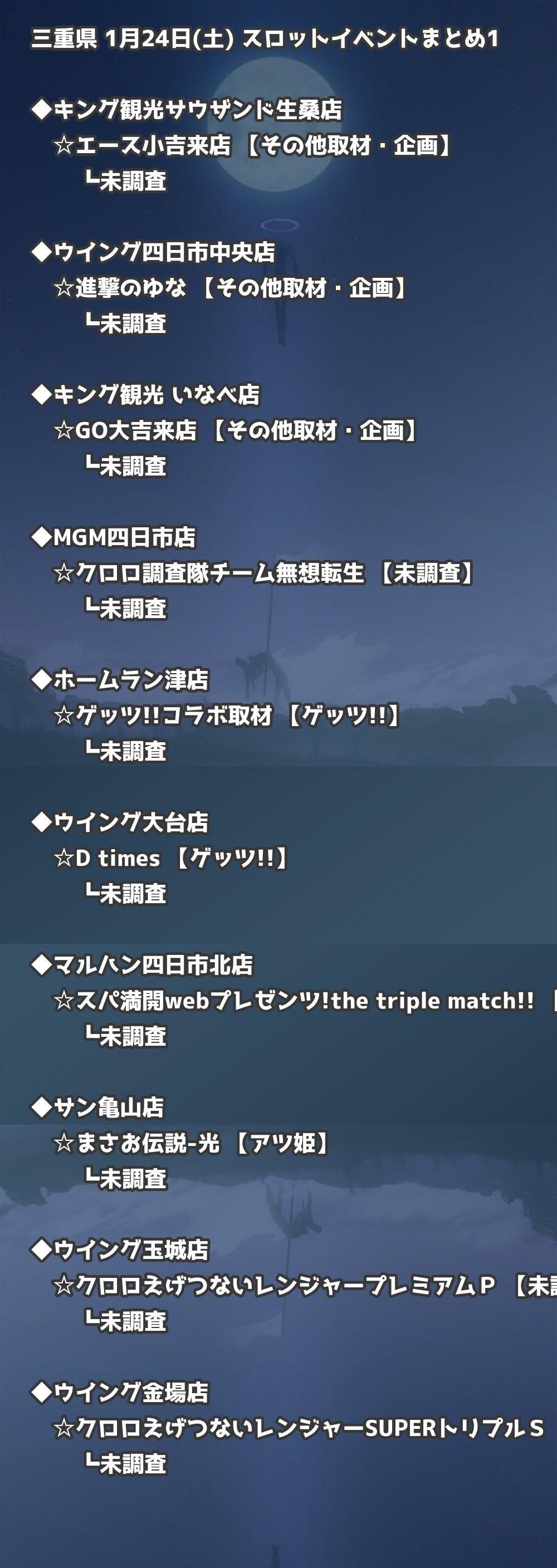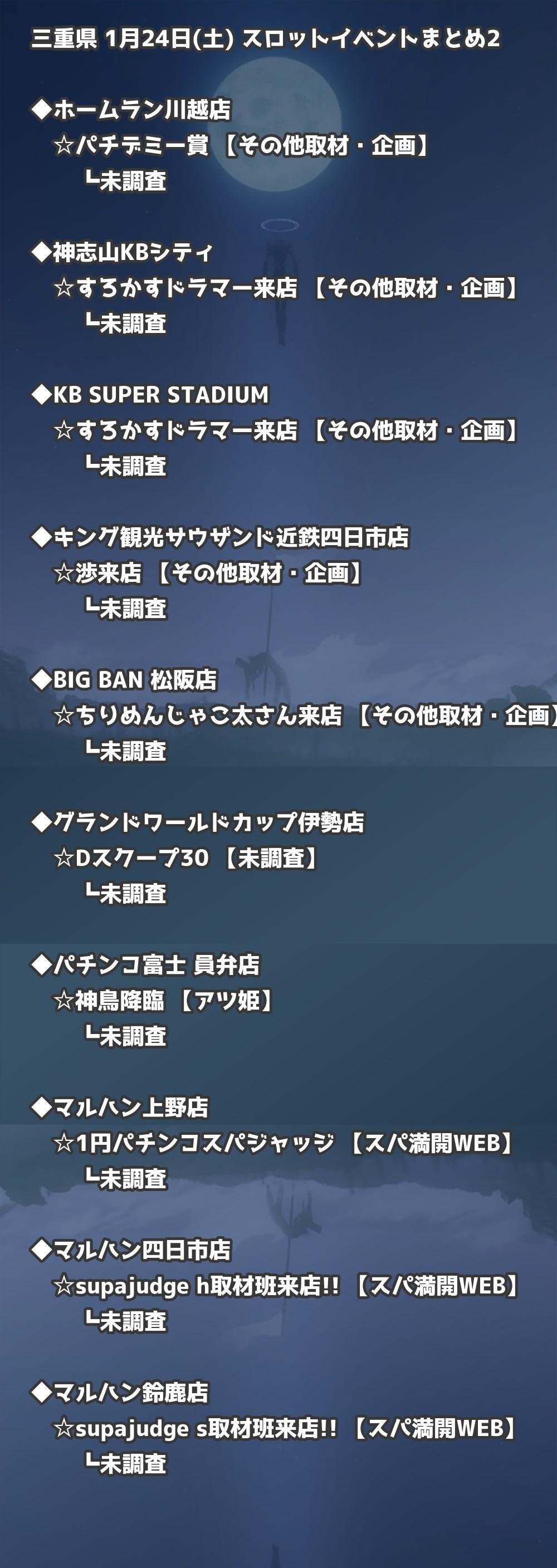 【三重県】1月24日(土) パチンコホールイベント取材まとめ記事です。