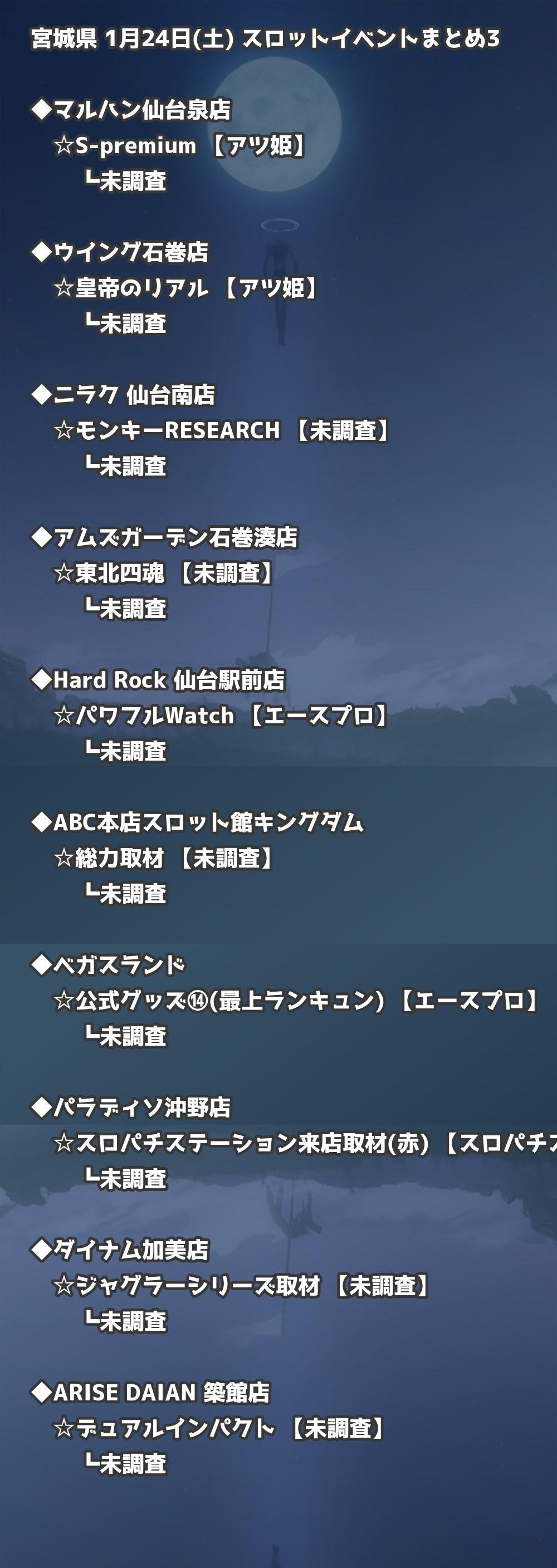 📊 宮城県 1月24日(土) 勝てるパチンコ・スロット取材店舗一覧|おすすめ順