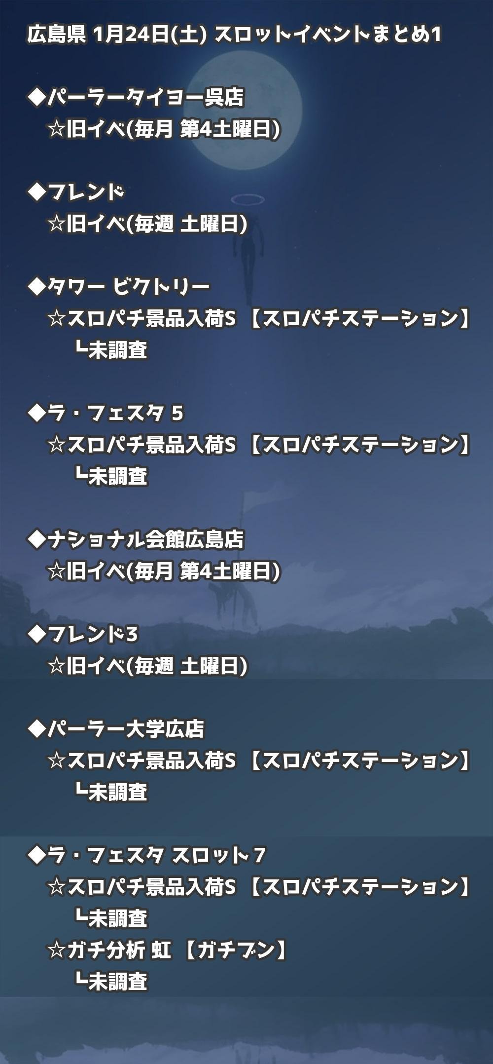 📊 広島県 1月24日(土) 勝てるパチンコ・スロット取材店舗一覧|おすすめ順