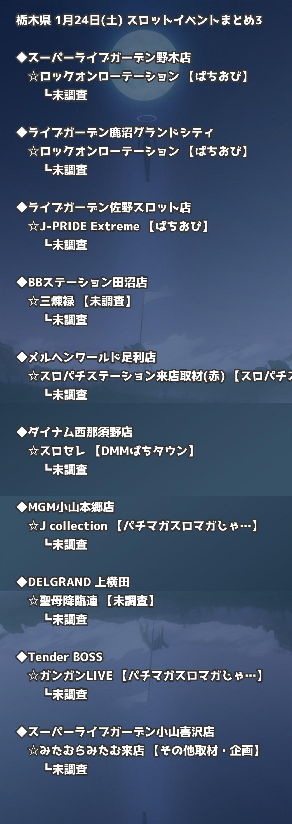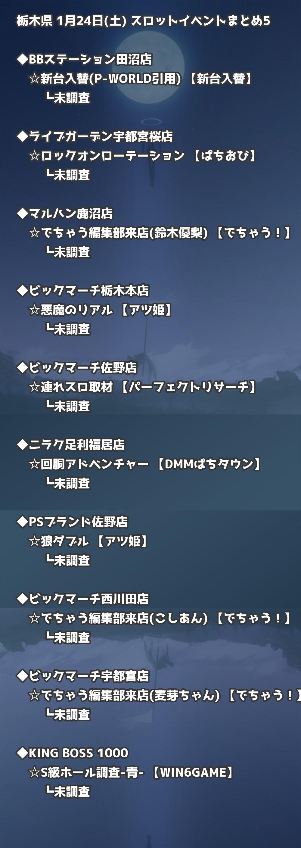 【栃木県】1月24日(土) パチンコホールイベント取材まとめ記事です。