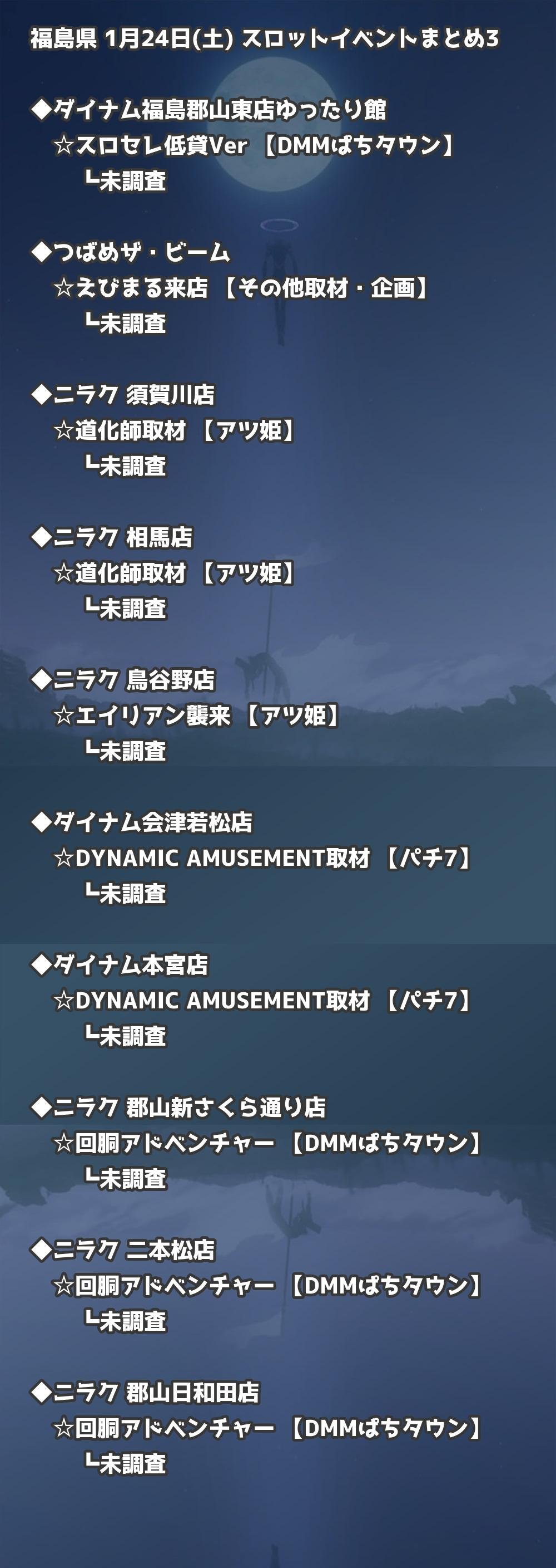 【福島県】1月24日(土) パチンコホールイベント取材まとめ記事です。