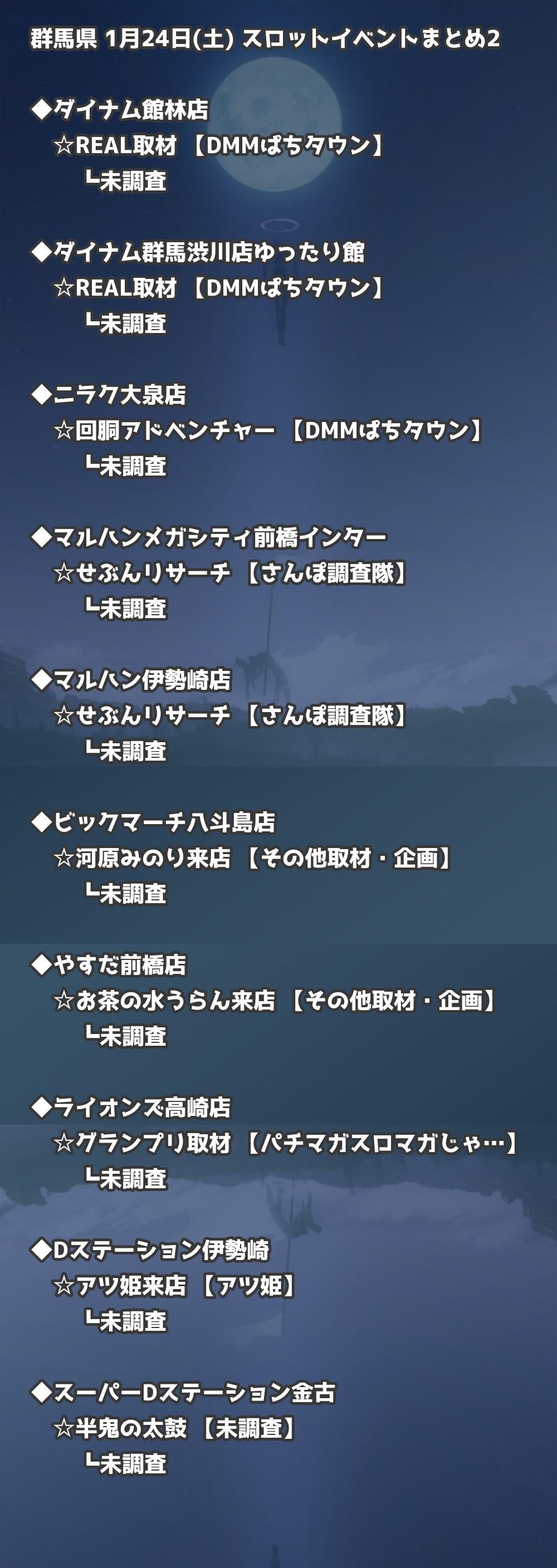 📊 群馬県 1月24日(土) 勝てるパチンコ・スロット取材店舗一覧|おすすめ順