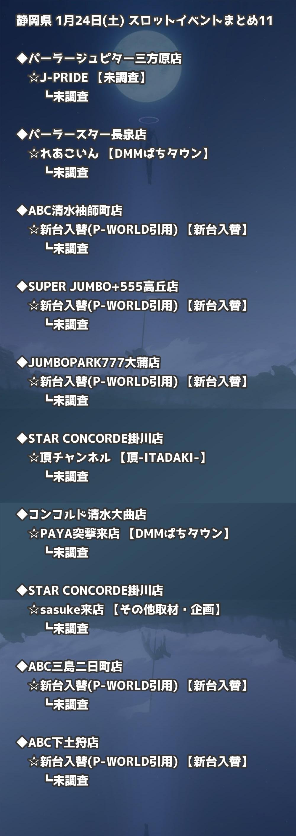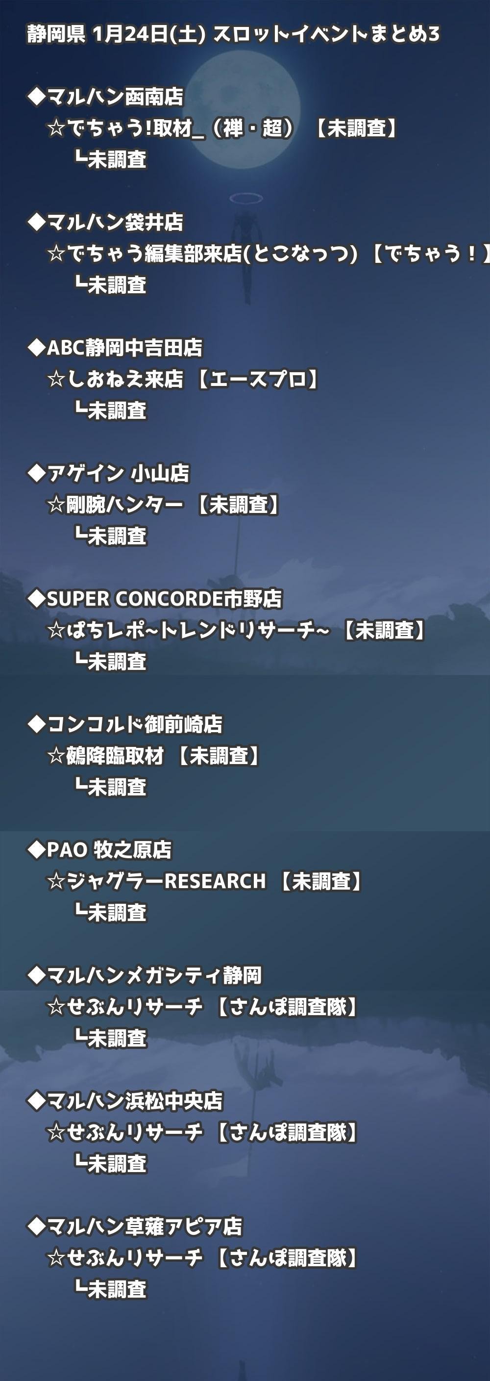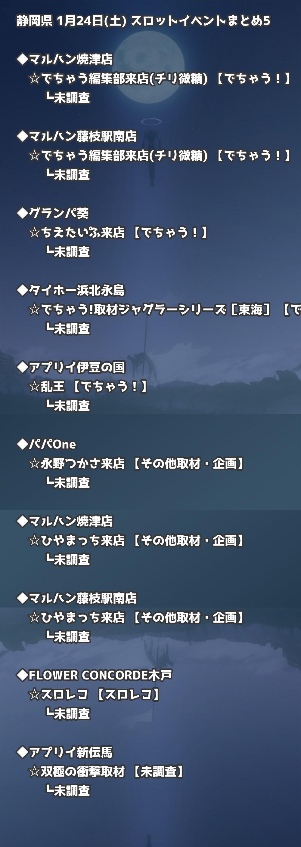 【静岡県】1月24日(土) パチンコホールイベント取材まとめ記事です。