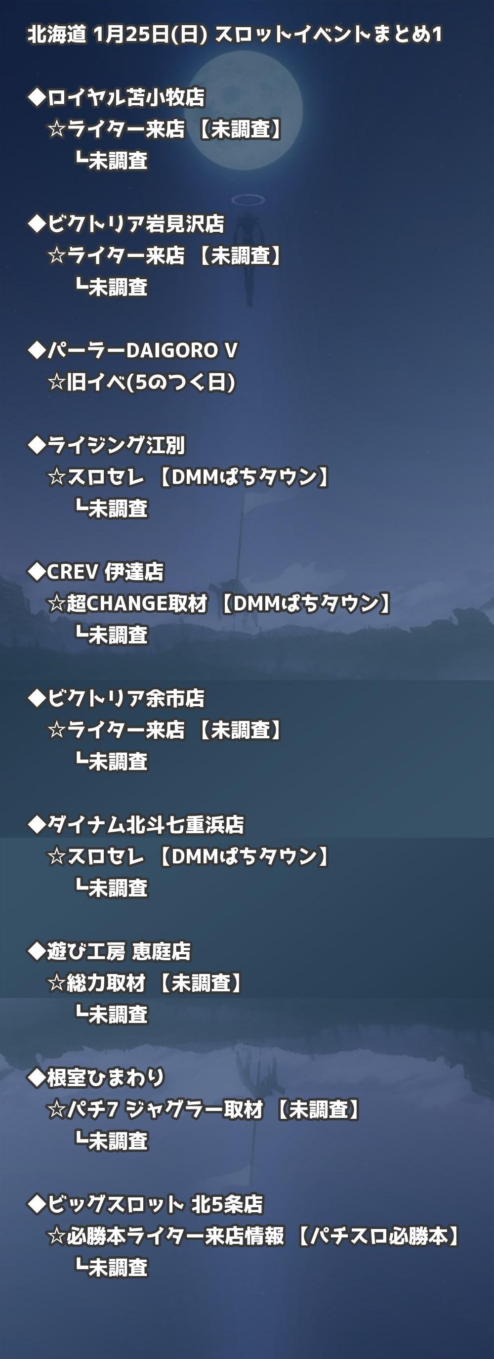 📊 北海道 1月25日(日) 勝てるパチンコ・スロット取材店舗一覧|おすすめ順