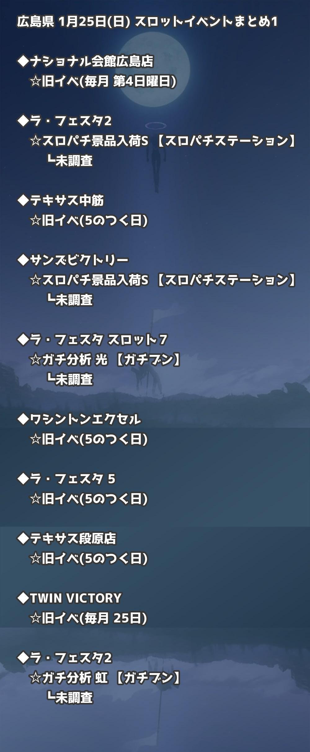 【広島県】1月25日(日) パチンコホールイベント取材まとめ記事です。