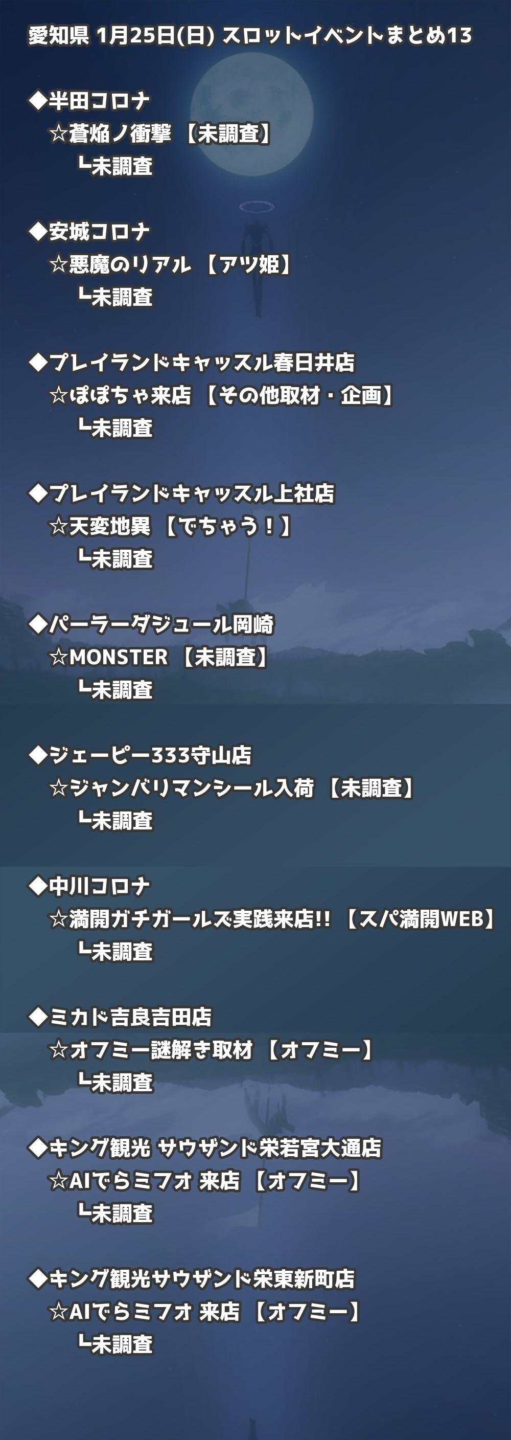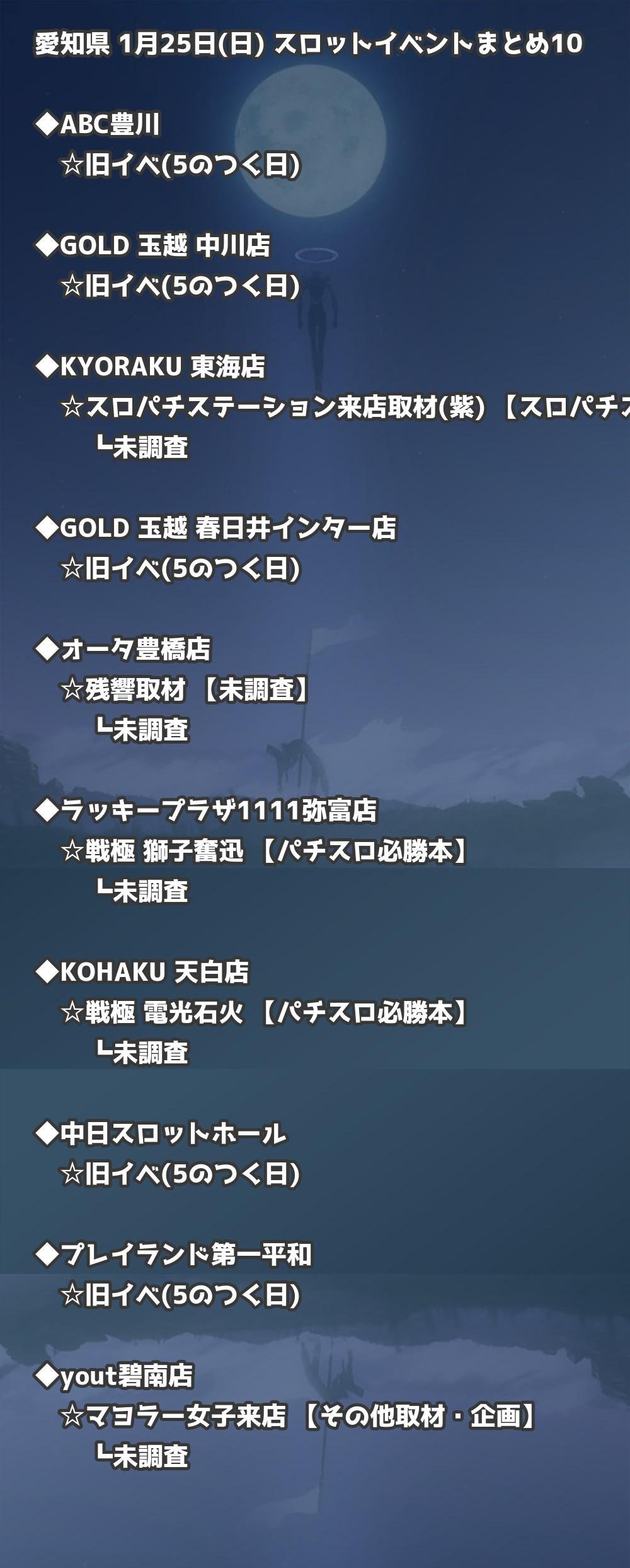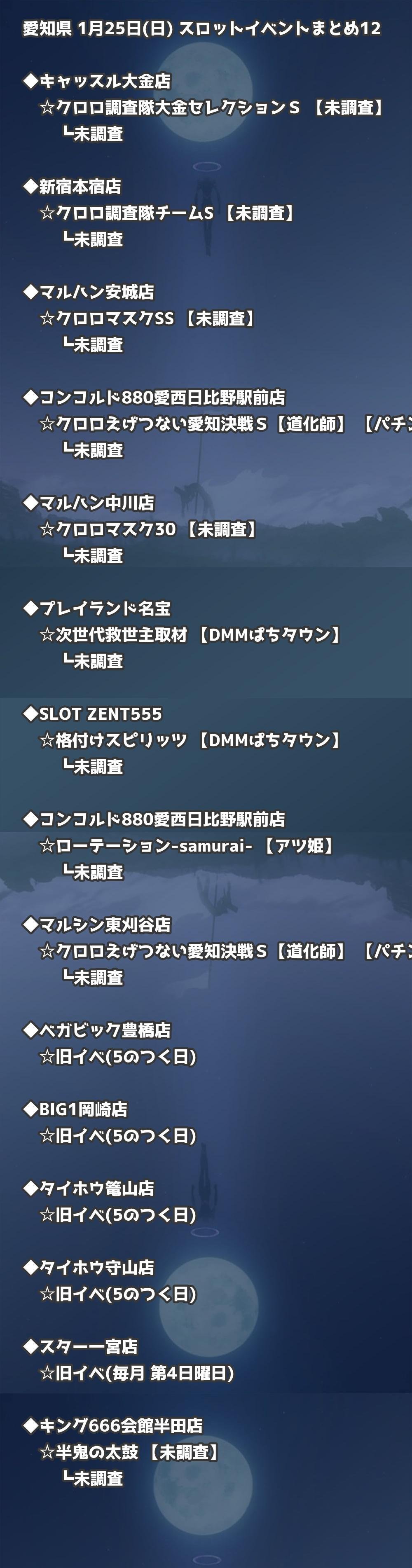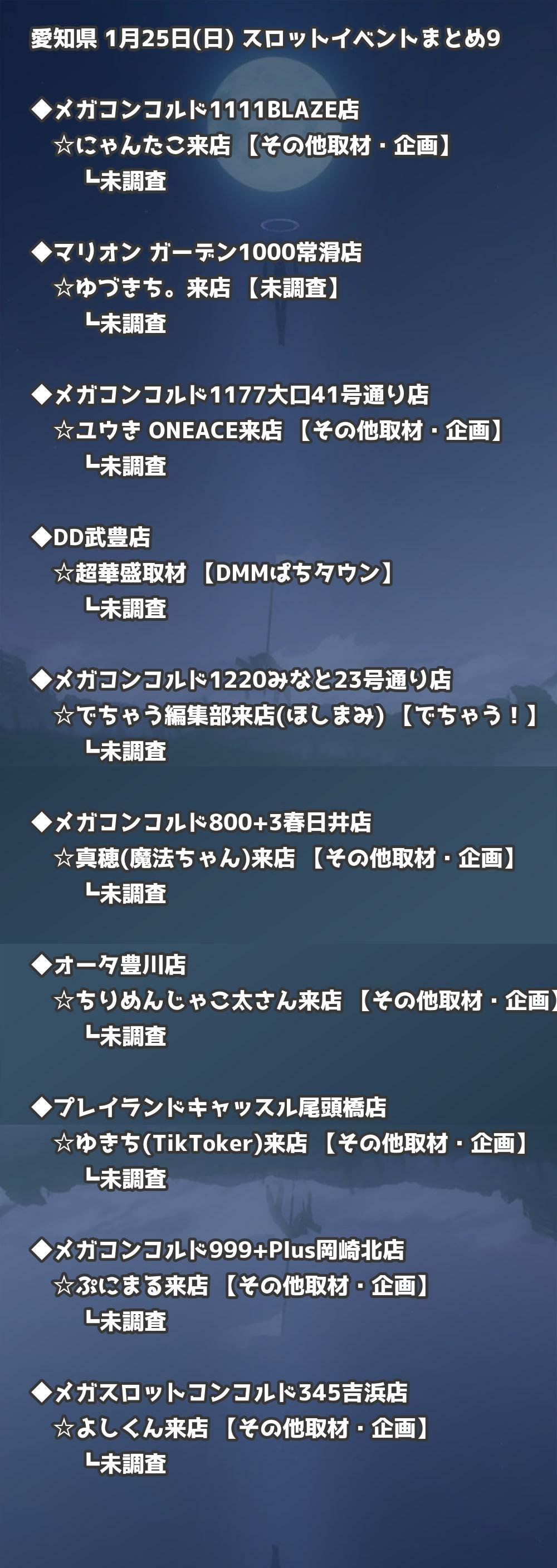 【愛知県】1月25日(日) パチンコホールイベント取材まとめ記事です。