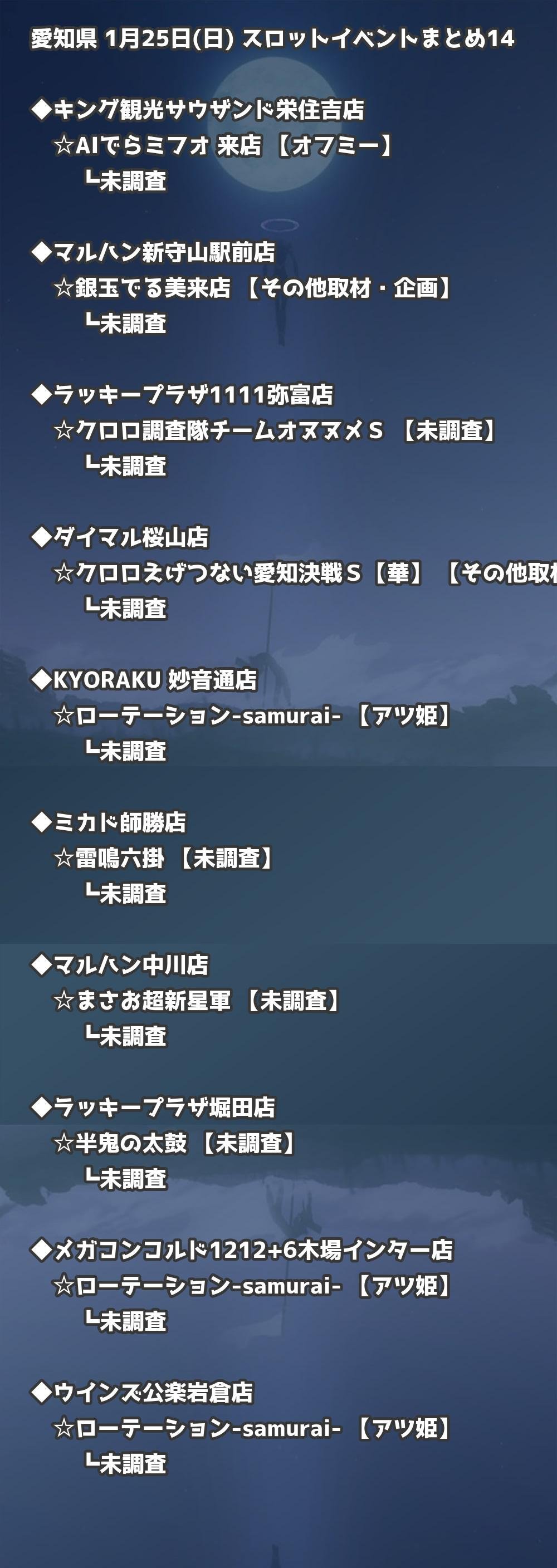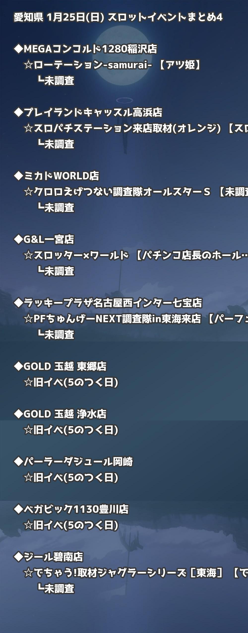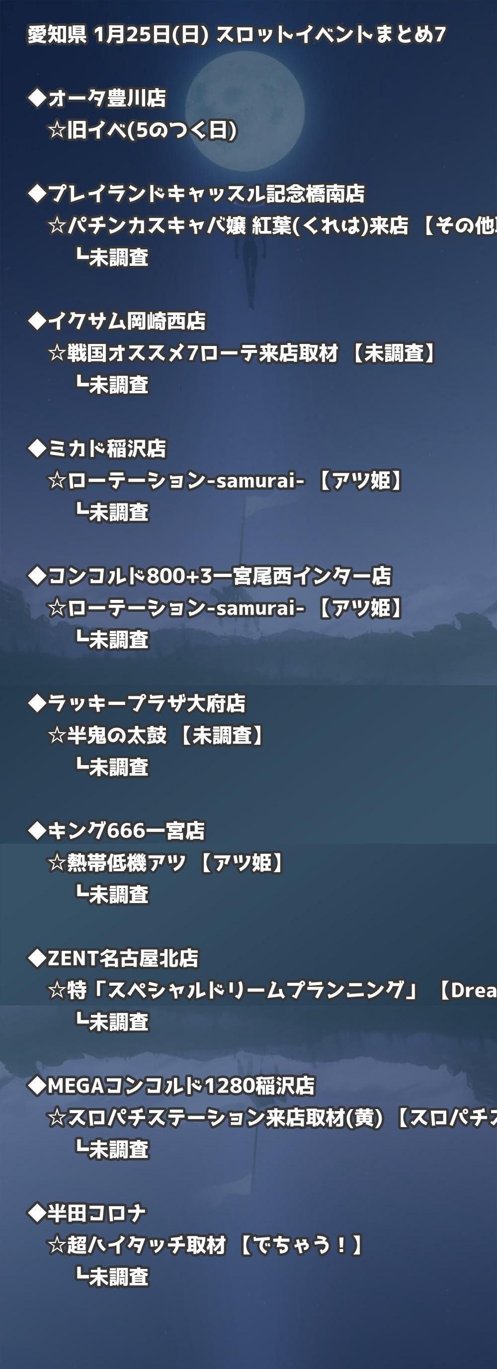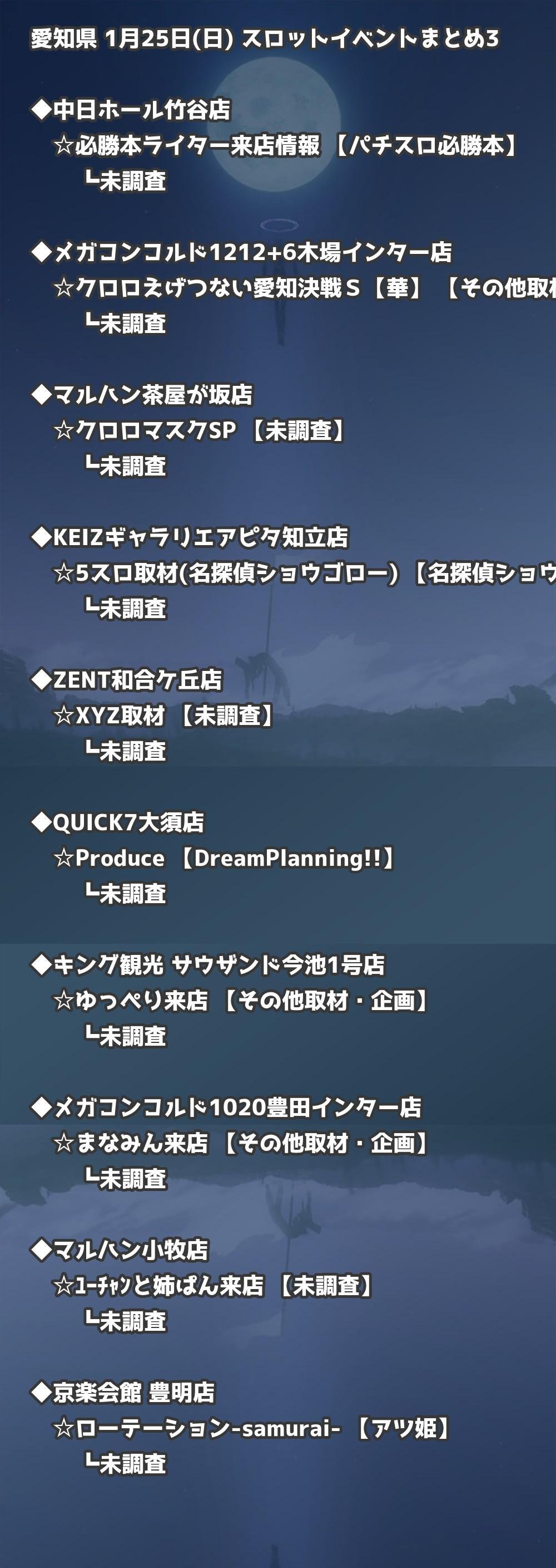 【愛知県】1月25日(日) パチンコホールイベント取材まとめ記事です。