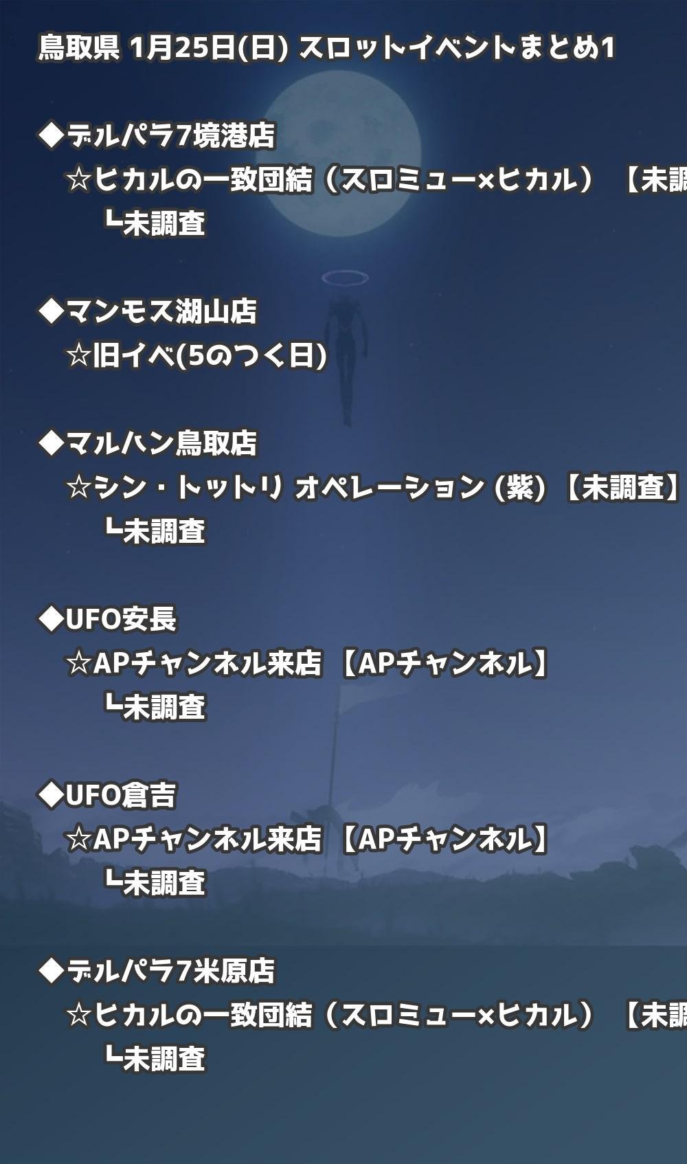 📊 鳥取県 1月25日(日) 勝てるパチンコ・スロット取材店舗一覧|おすすめ順