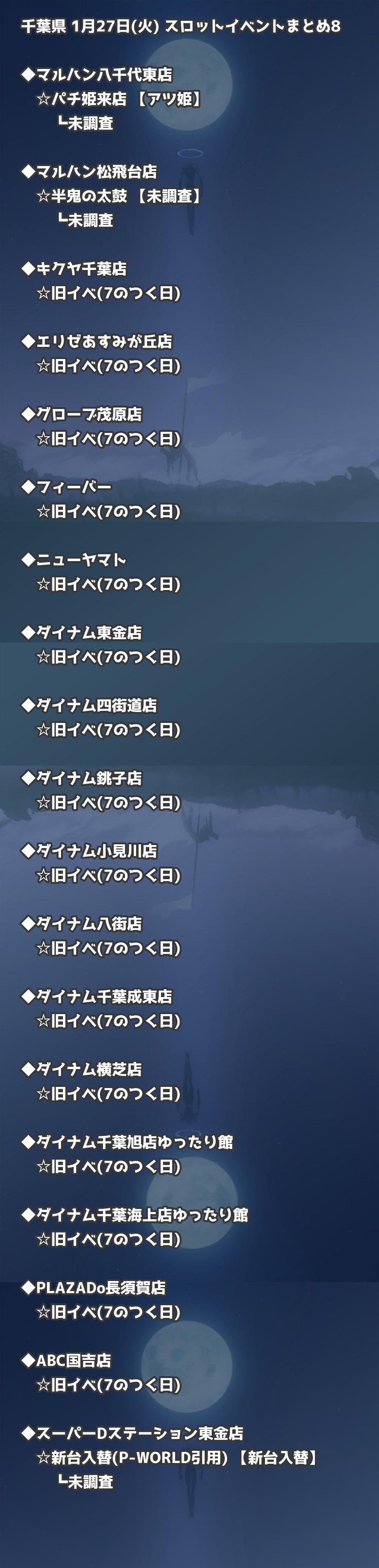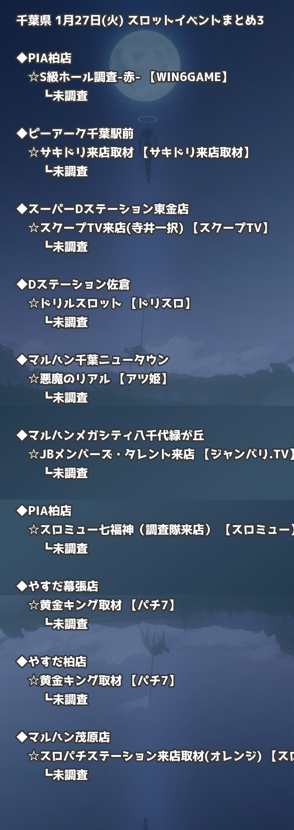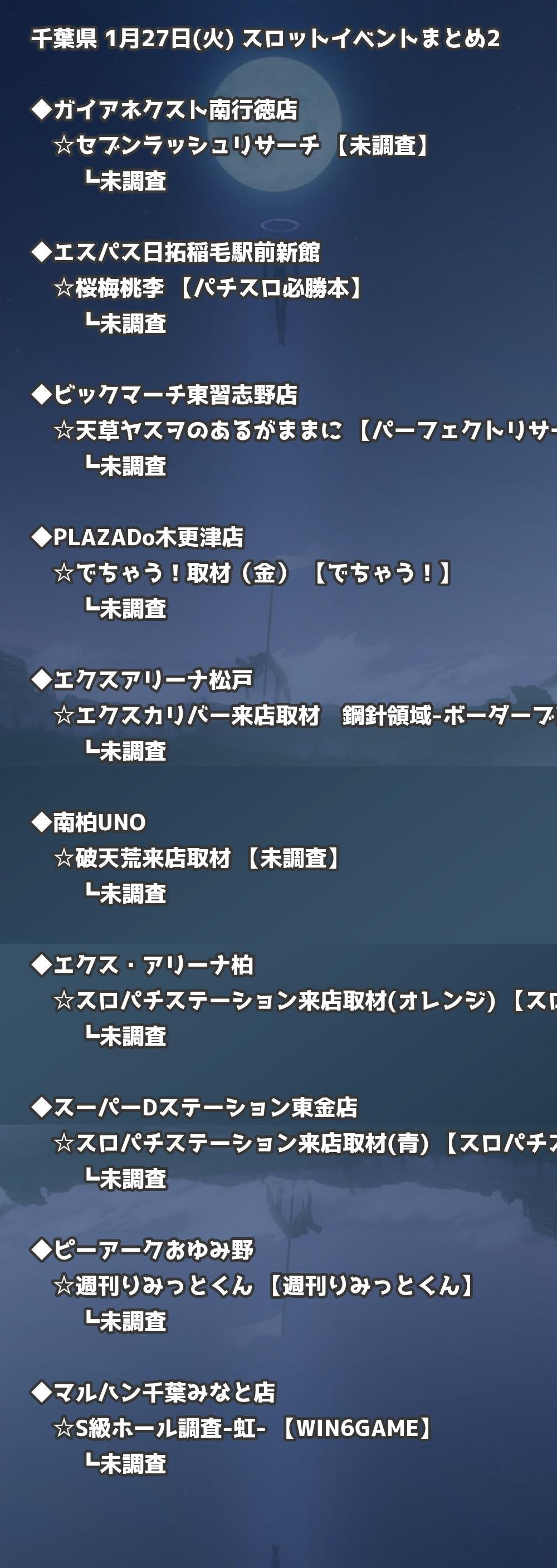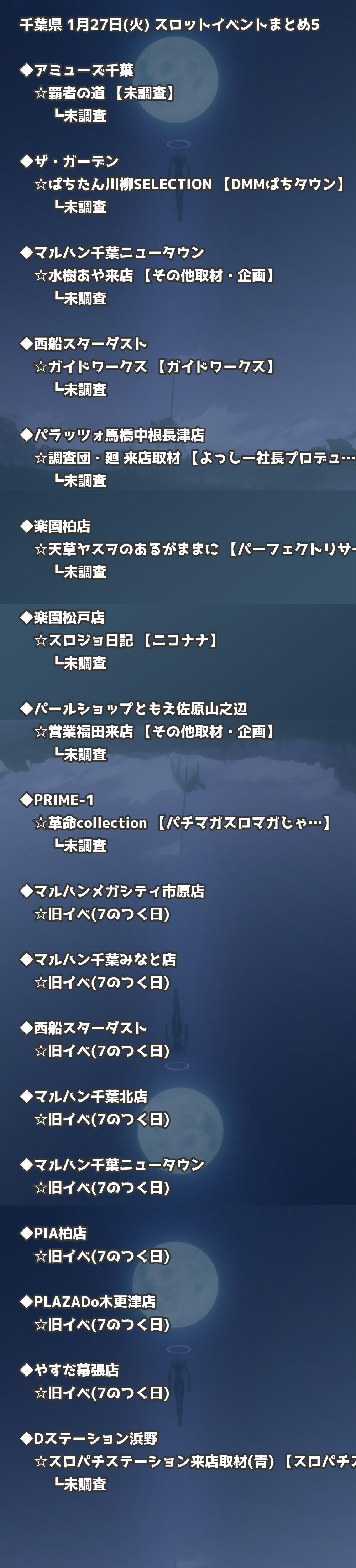 ※店舗結果掲載済 【千葉】1月27日(火) 今日のスロット・パチンコ激熱イベント取材まとめ