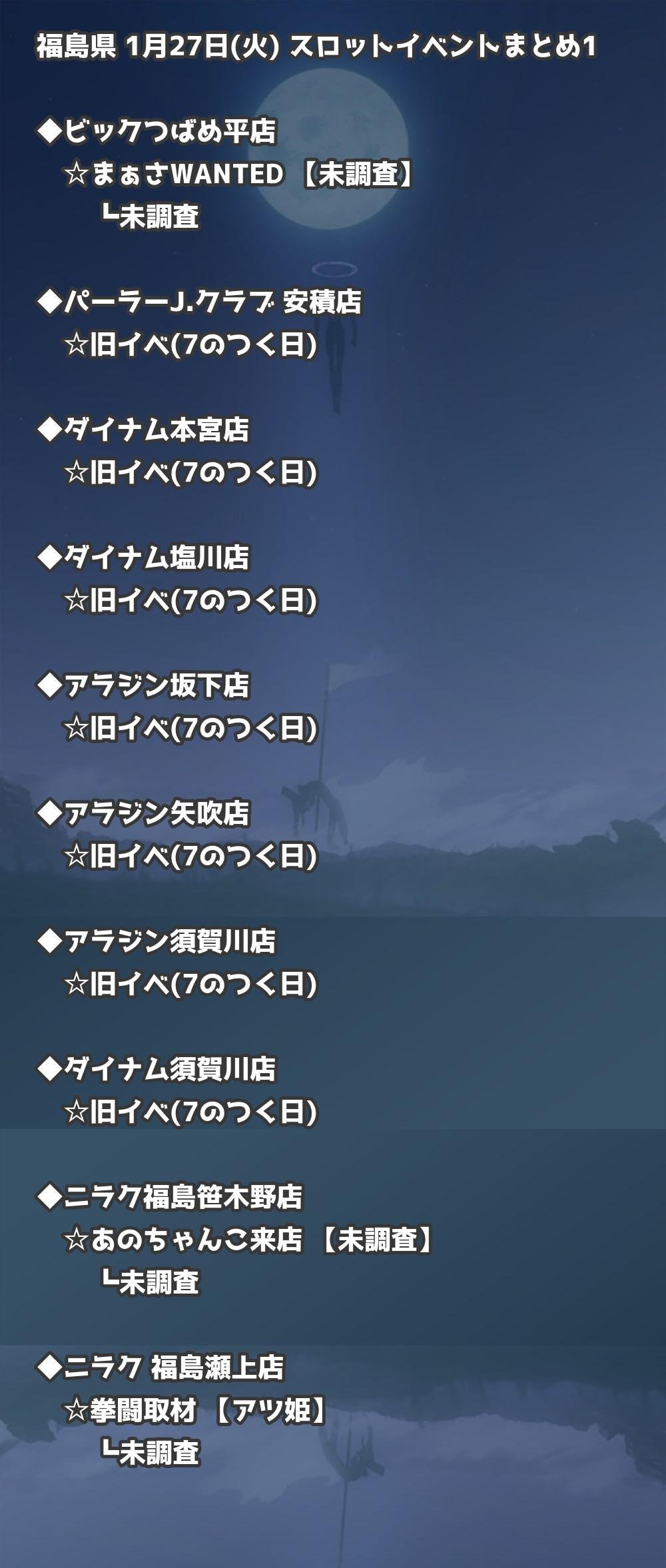【福島県】1月27日(火) パチンコホールイベント取材まとめ記事です。