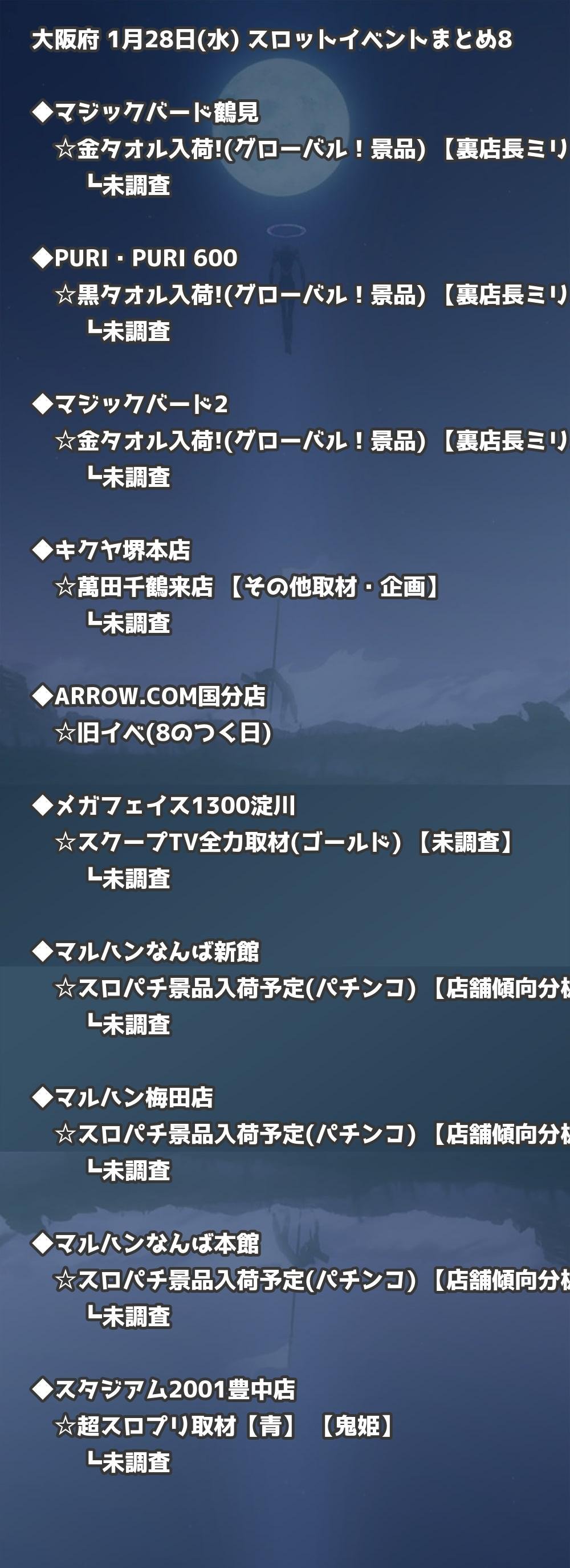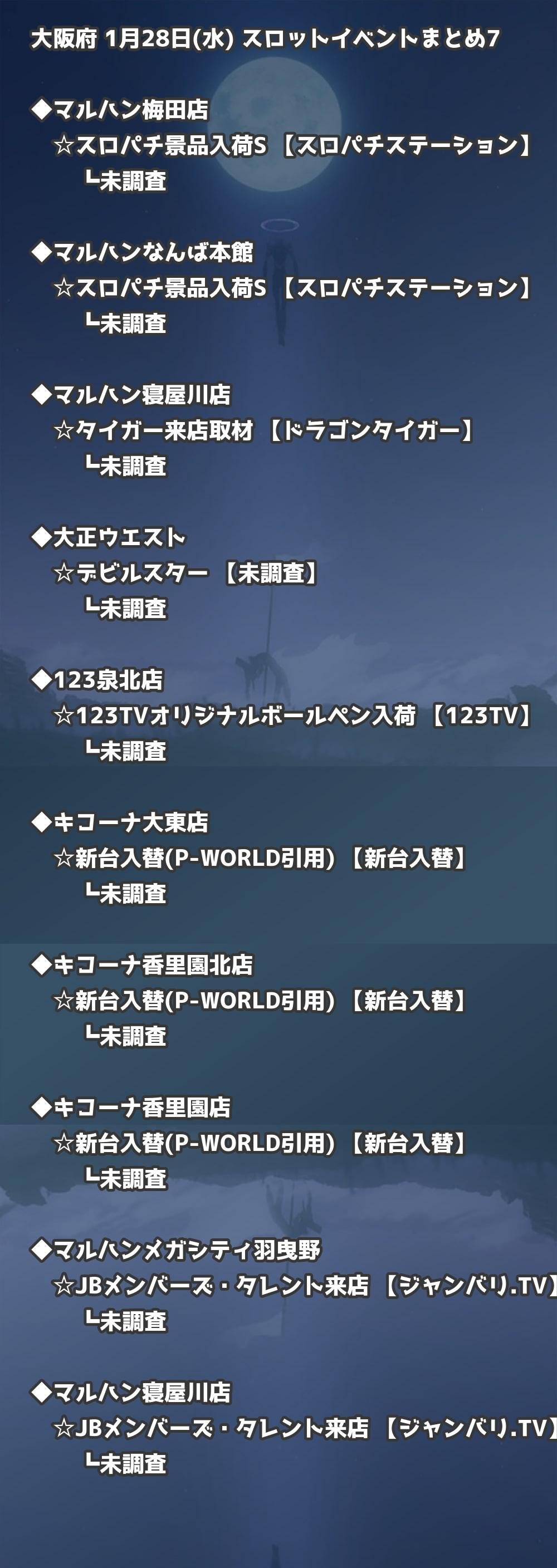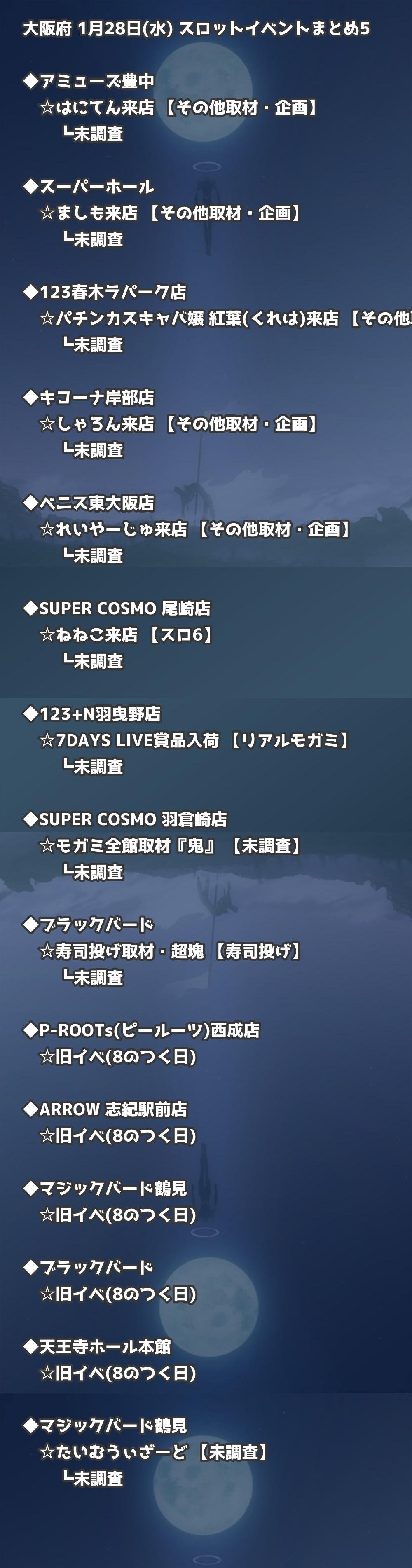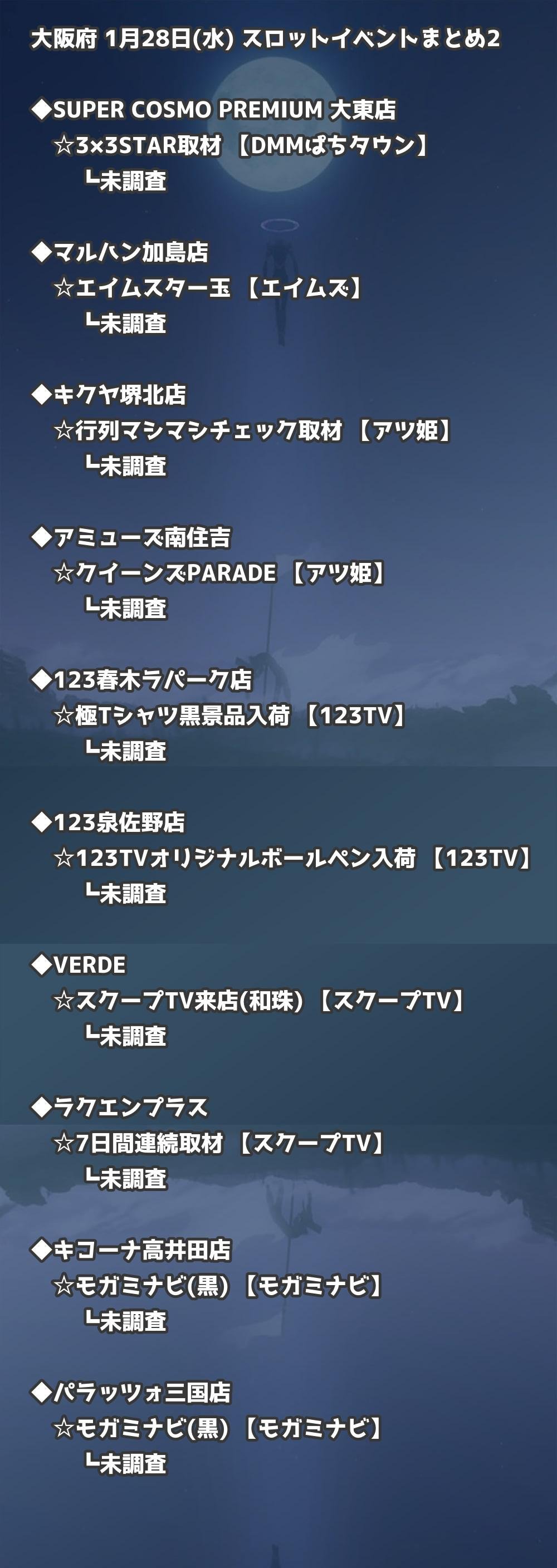 【大阪府】1月28日(水) パチンコホールイベント取材まとめ記事です。