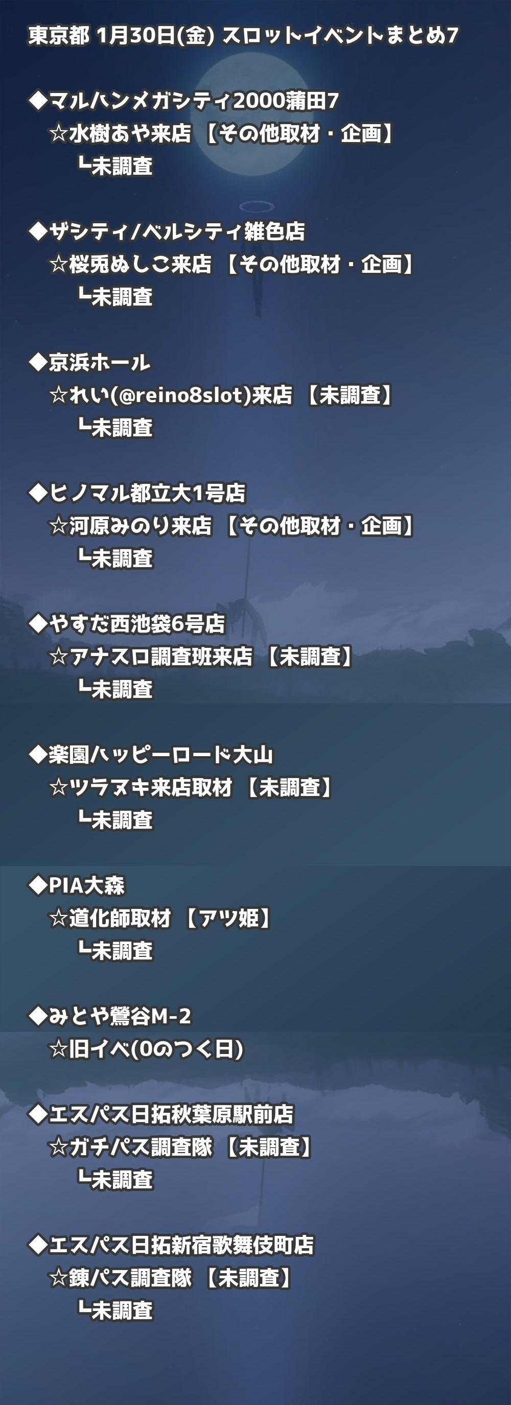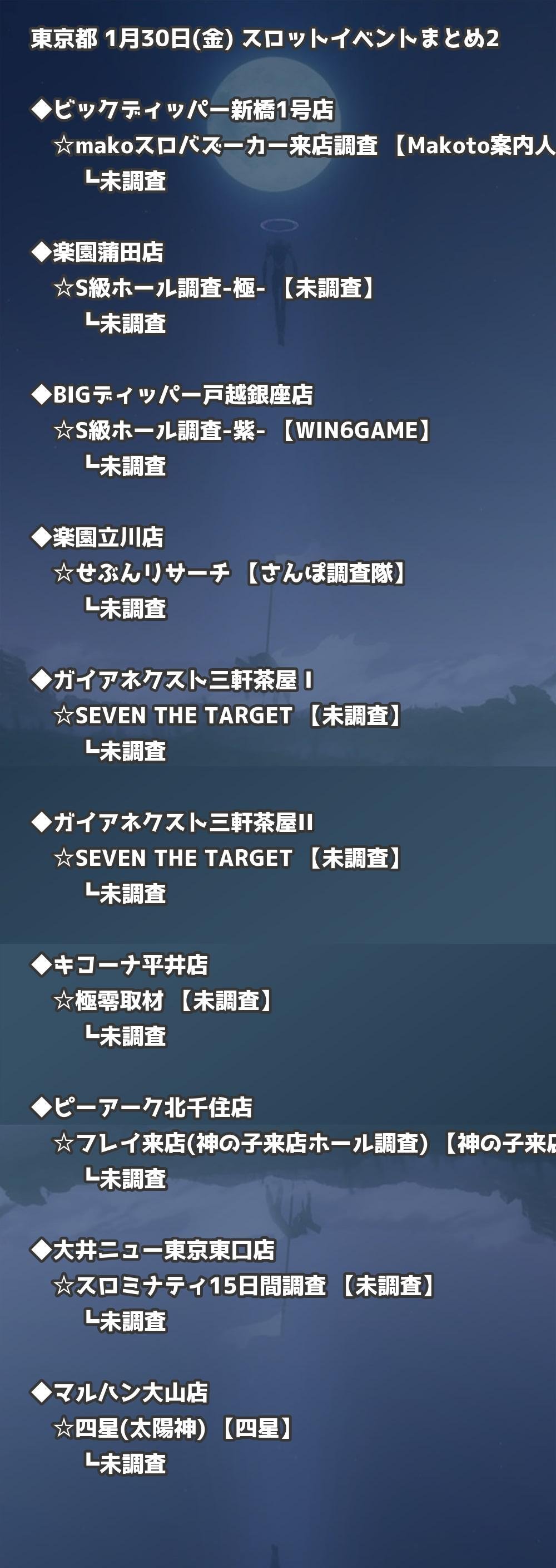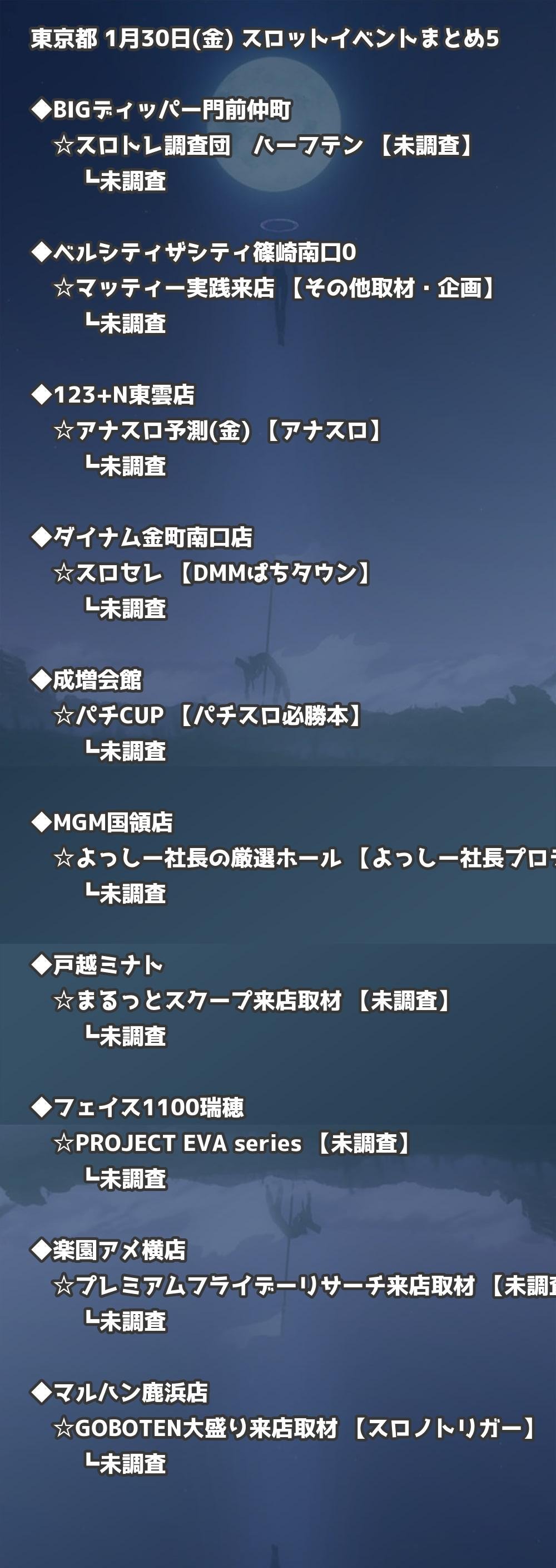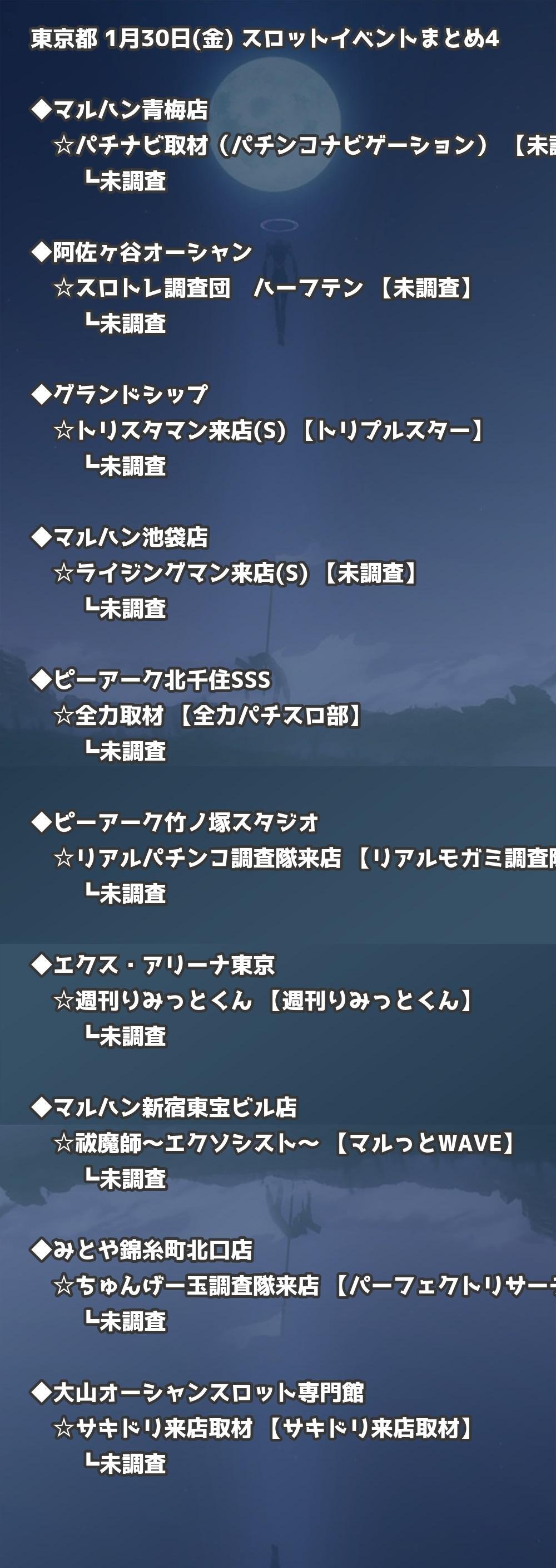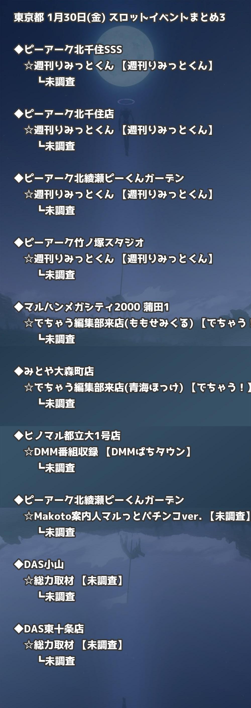 【東京都】1月30日(金) パチンコホールイベント取材まとめ記事です。