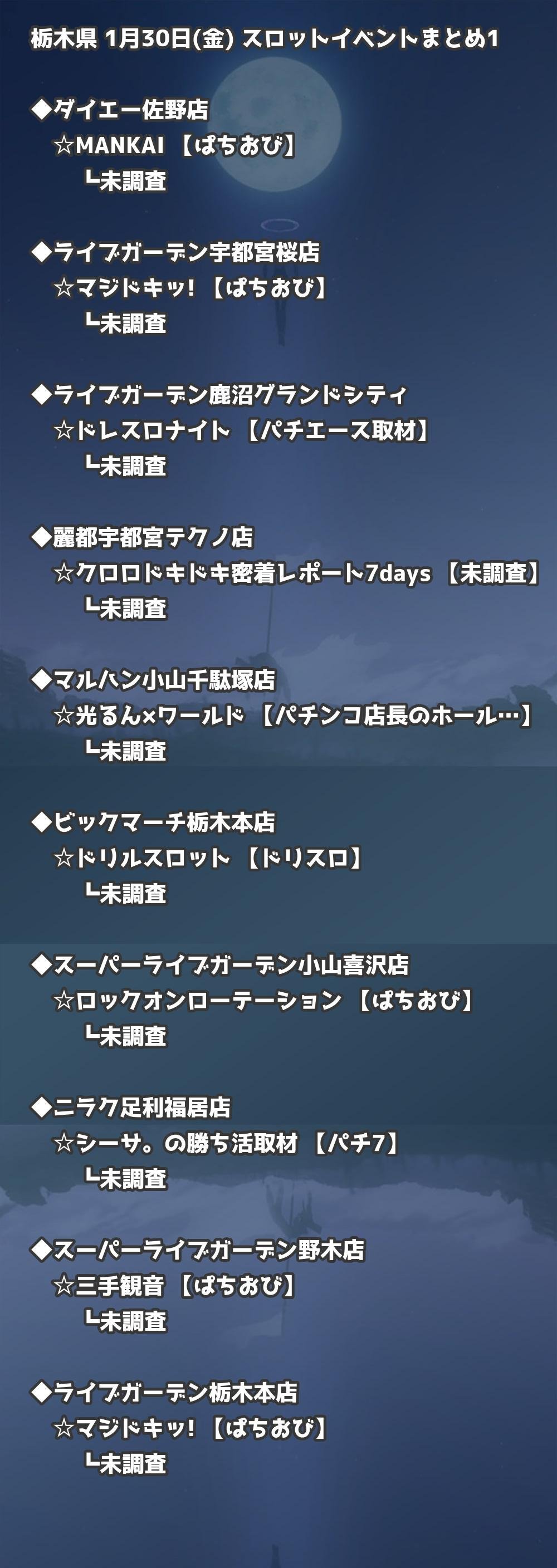 【栃木県】1月30日(金) パチンコホールイベント取材まとめ記事です。