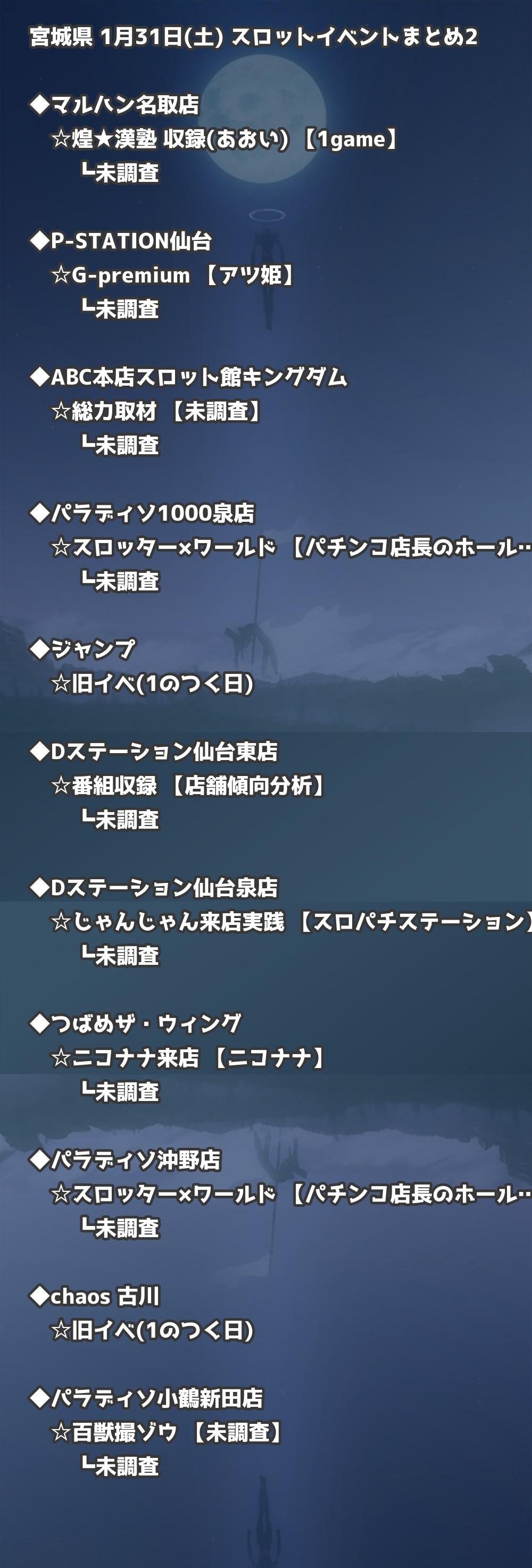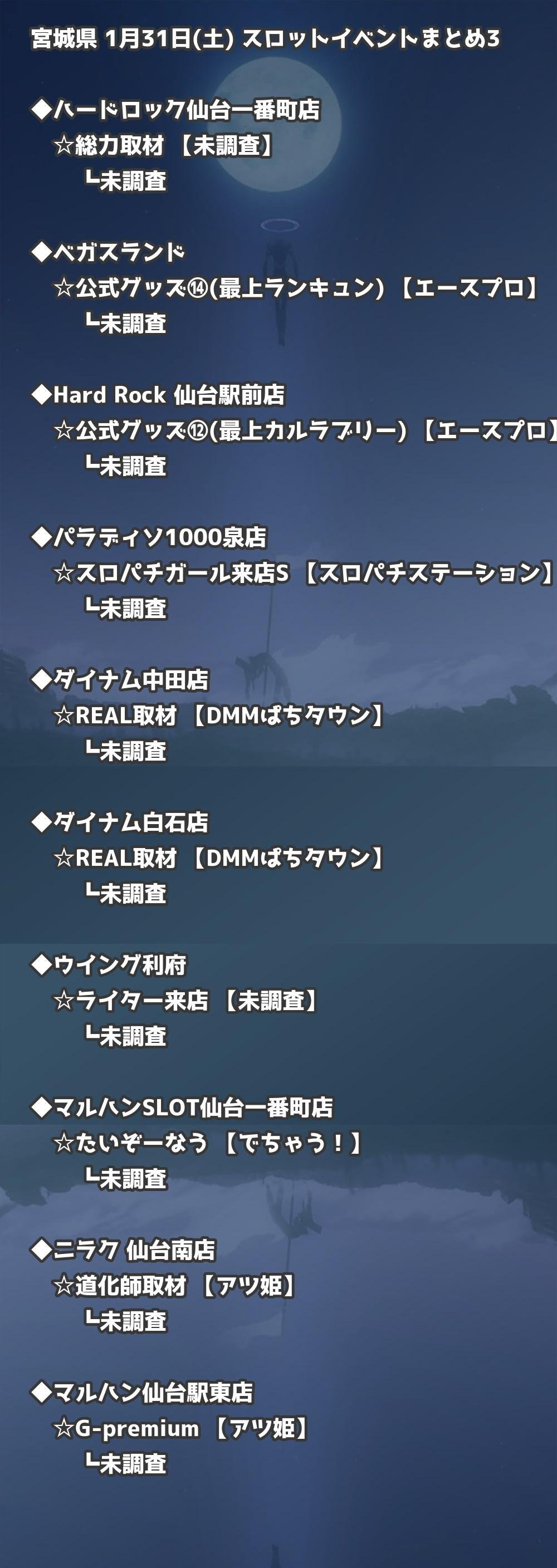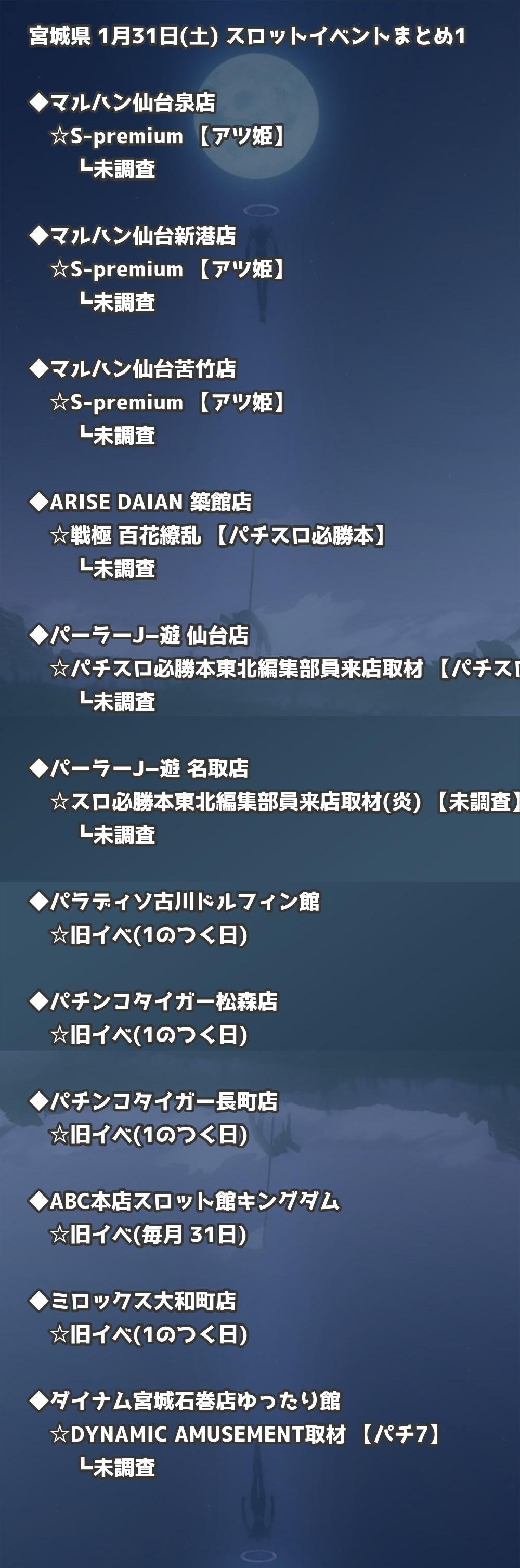 【宮城県】1月31日(土) パチンコホールイベント取材まとめ記事です。