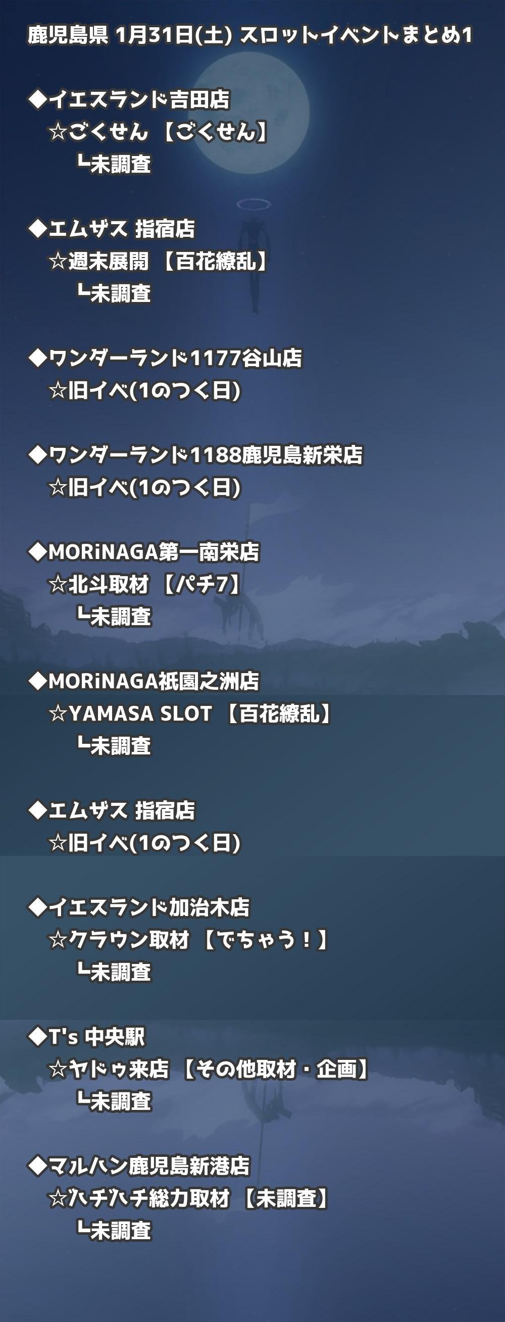 📊 鹿児島県 1月31日(土) 勝てるパチンコ・スロット取材店舗一覧|おすすめ順
